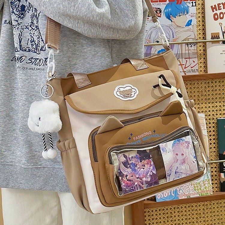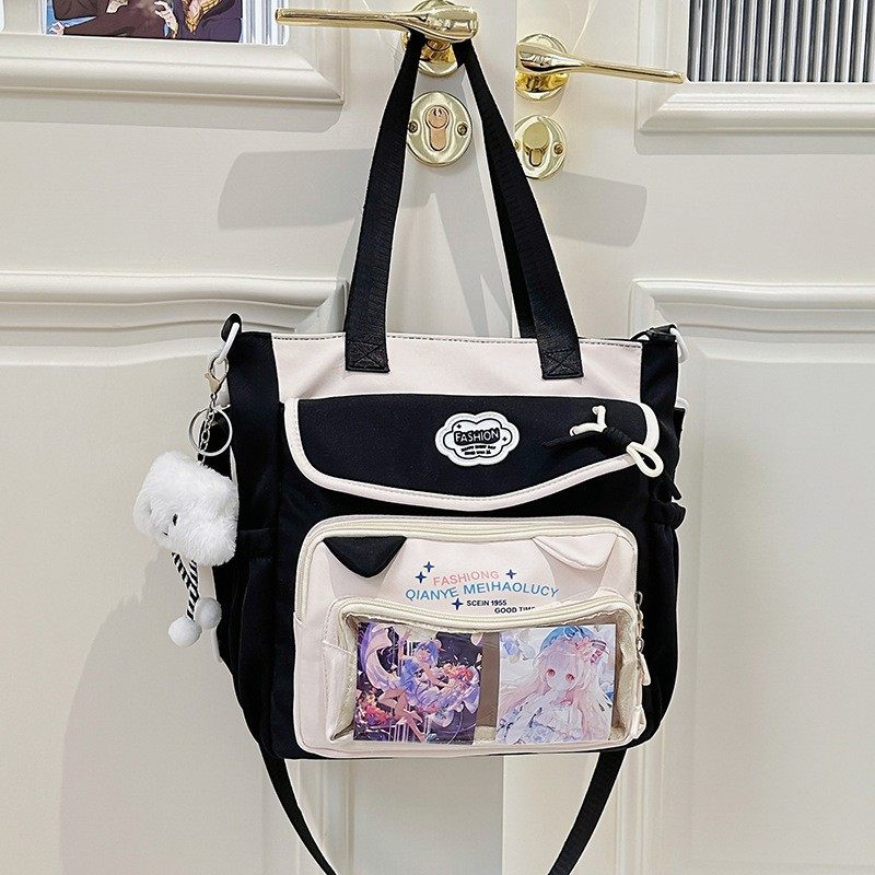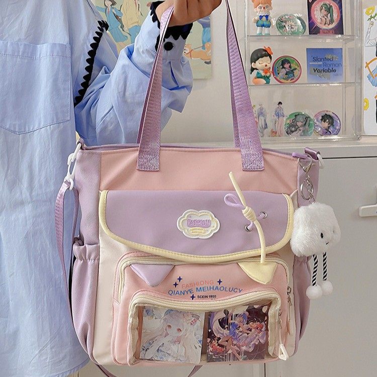 高颜值尼龙斜挎上课袋装书包手提包包学院风新款清新甜美补课包
