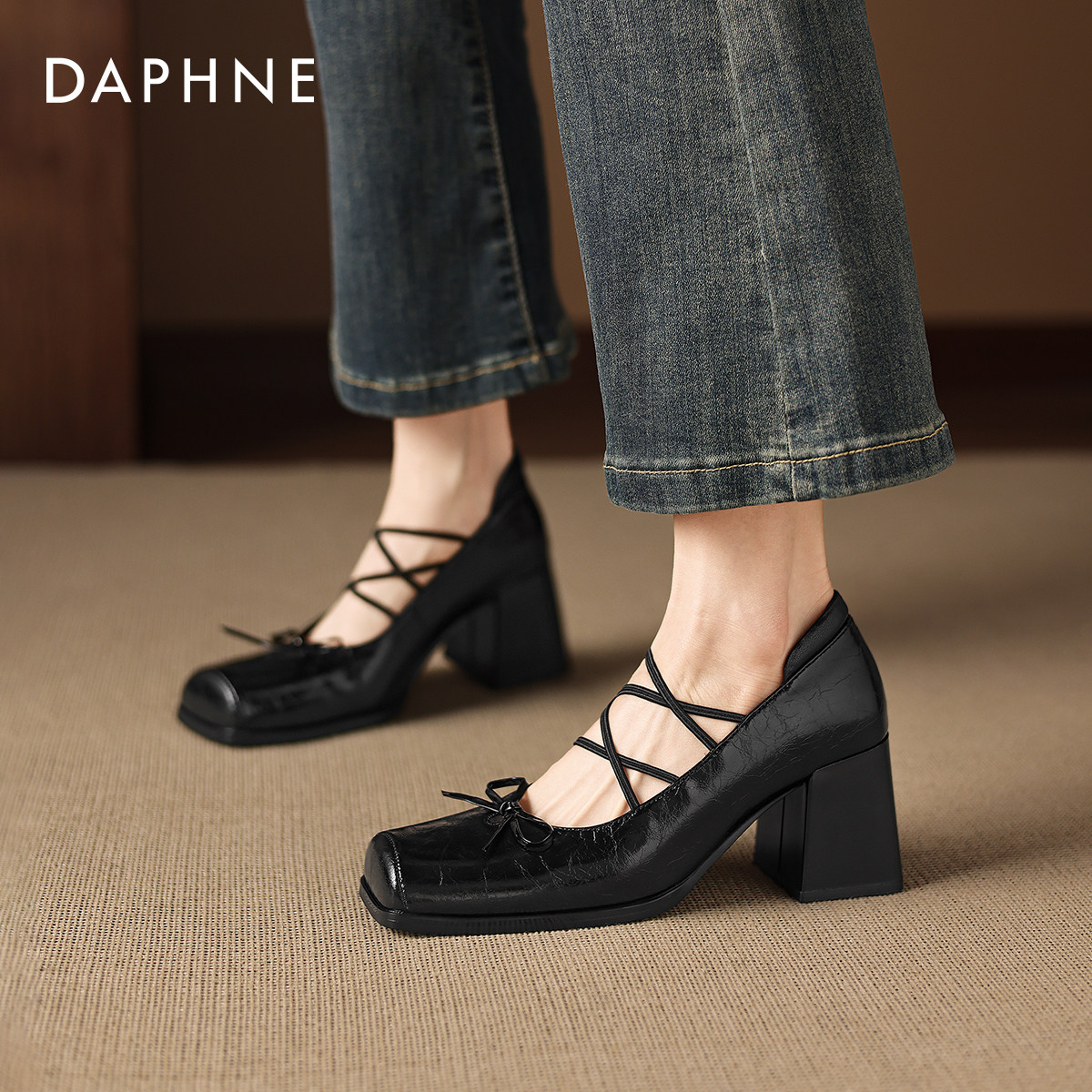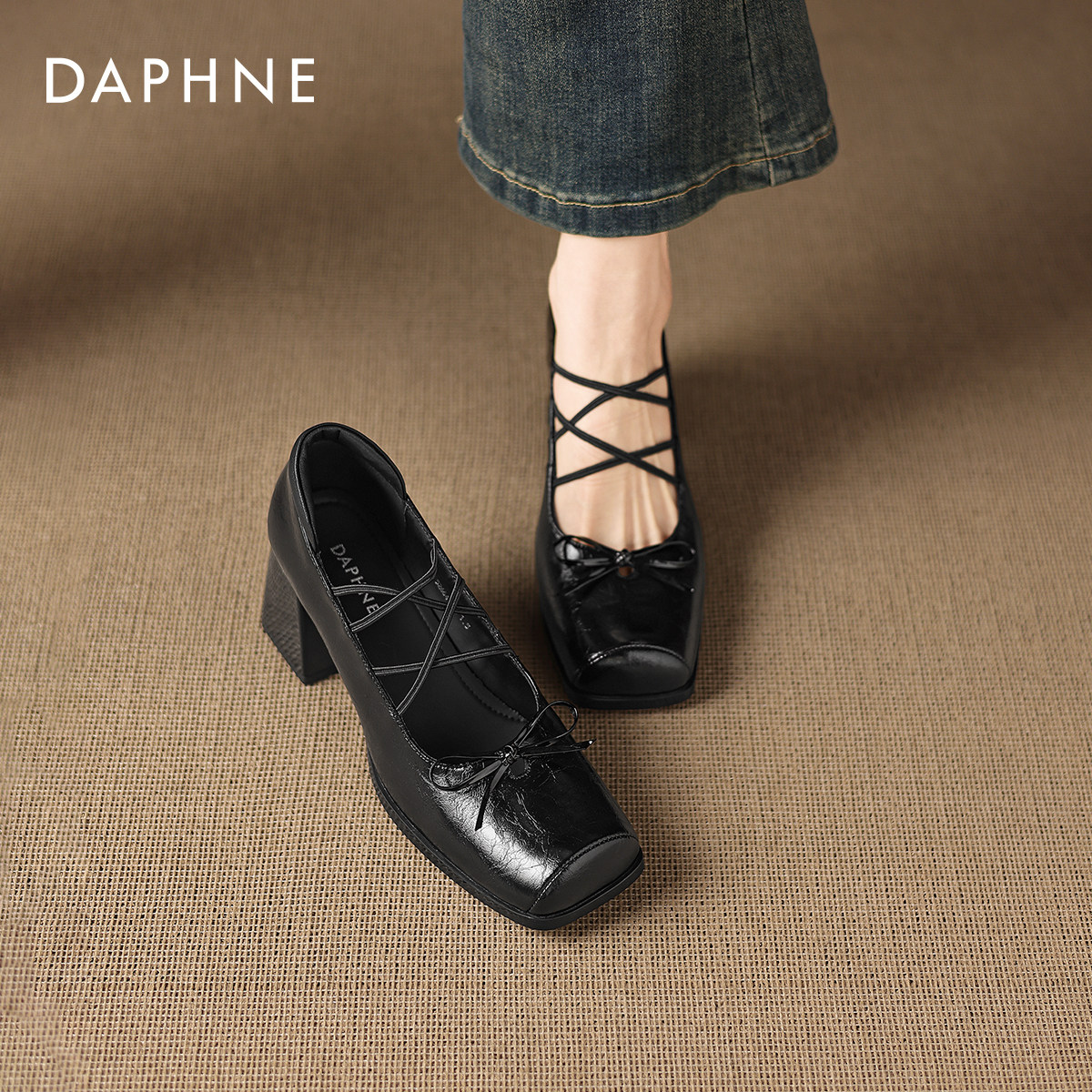达芙妮芭蕾单鞋女2026新款春季高跟鞋黑色小皮鞋法式玛丽珍女鞋子