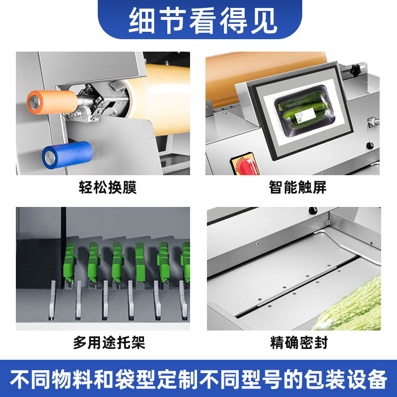 全自动蔬菜水果保鲜膜包装机带托盒商超蔬果生鲜熟食覆膜打包机