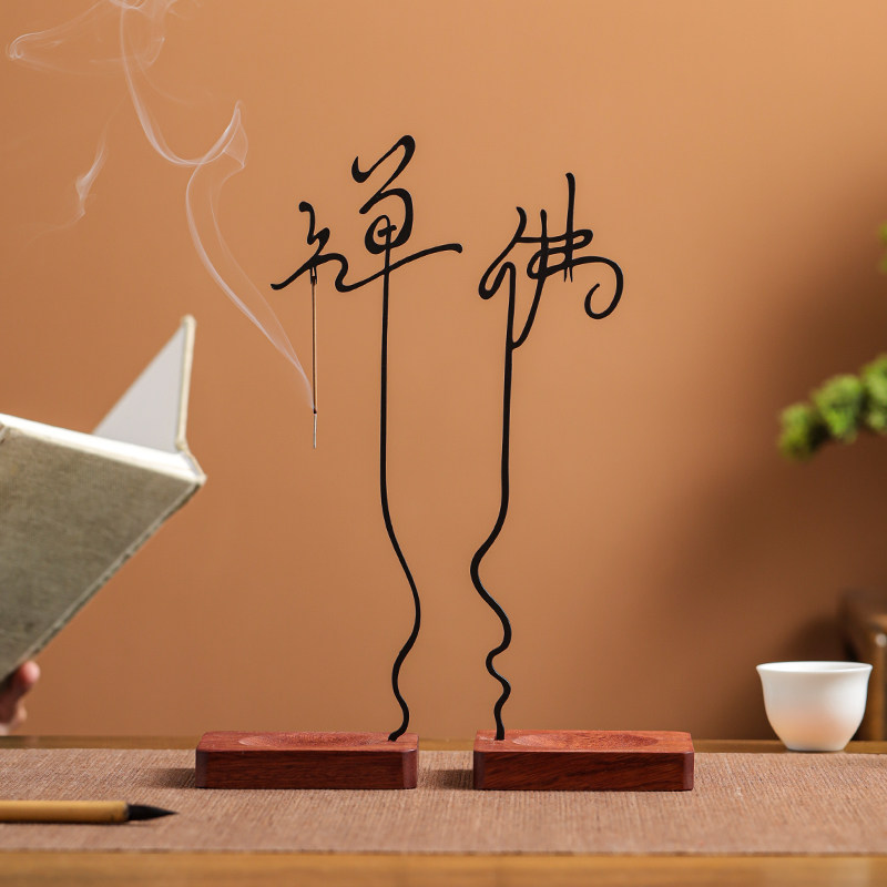 创意倒挂香插香薰炉挂式点香禅字线香插茶道香炉香座禅意香架檀香