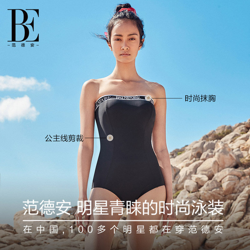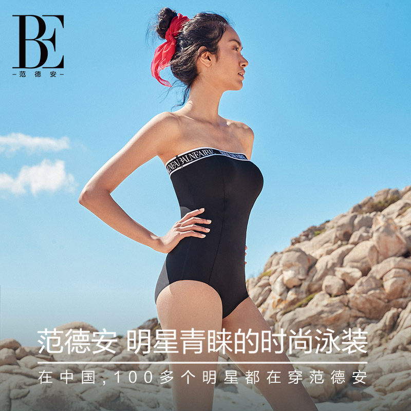 【赵昭仪同款】BE范德安时尚系列连体泳衣女士抹胸微胖女孩遮肉