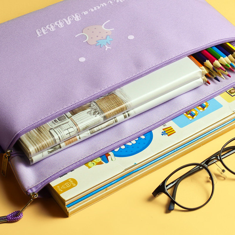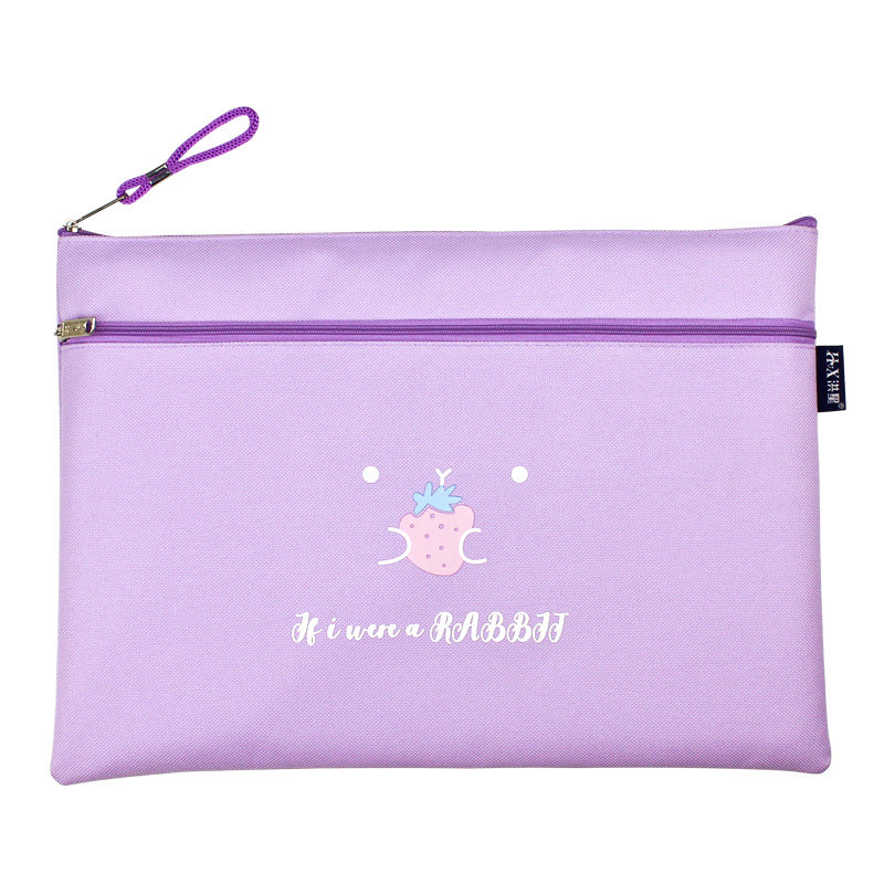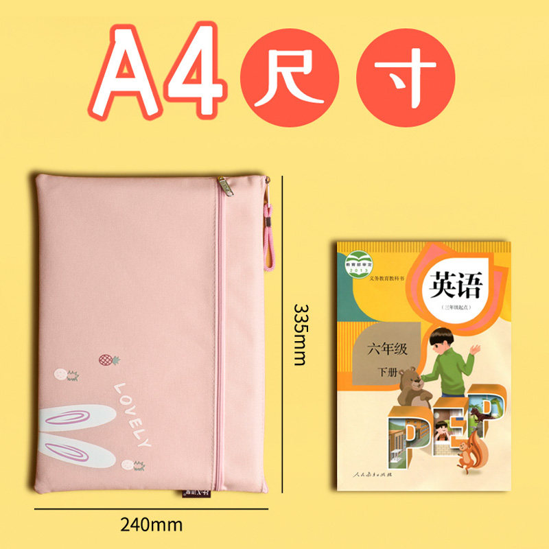 a4手提文件袋双层拉链学生A5双层笔袋大容量多层帆布防水女简约小学生用科目学科分类手拎资料包孕妇便携