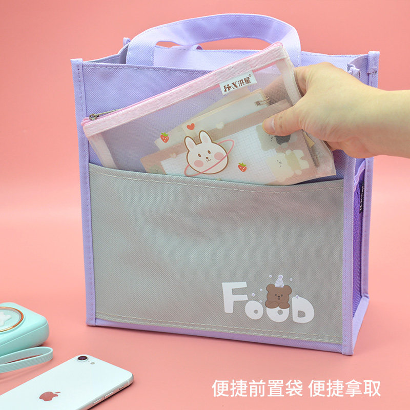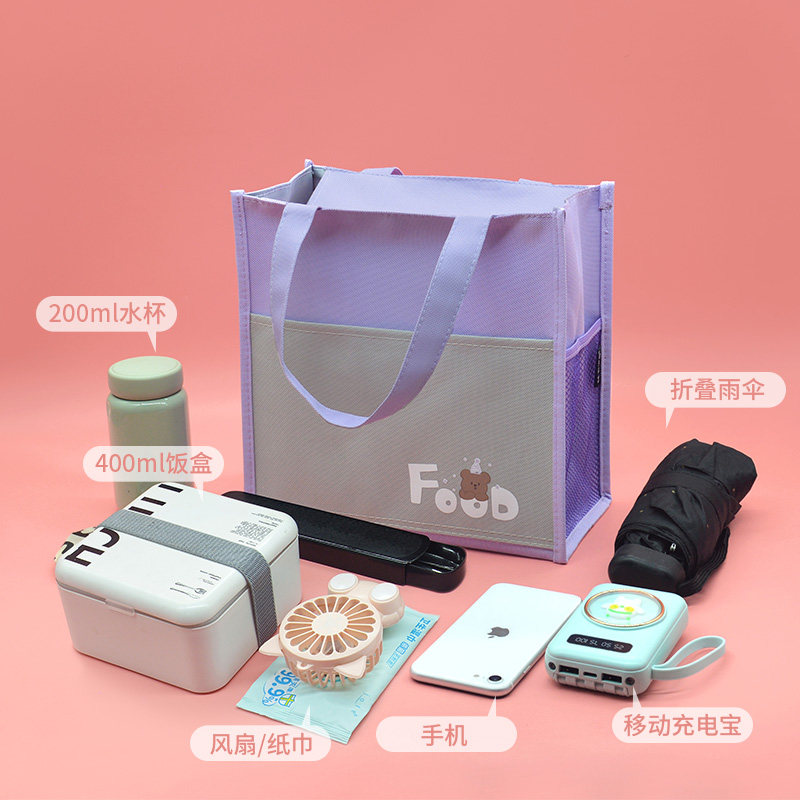 饭盒手提包学生上班族便当手提袋女生外出水杯雨伞手拎包儿童防水大容量午餐盒拎包可爱卡通小学生带饭收纳袋