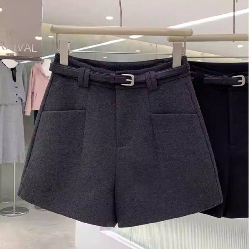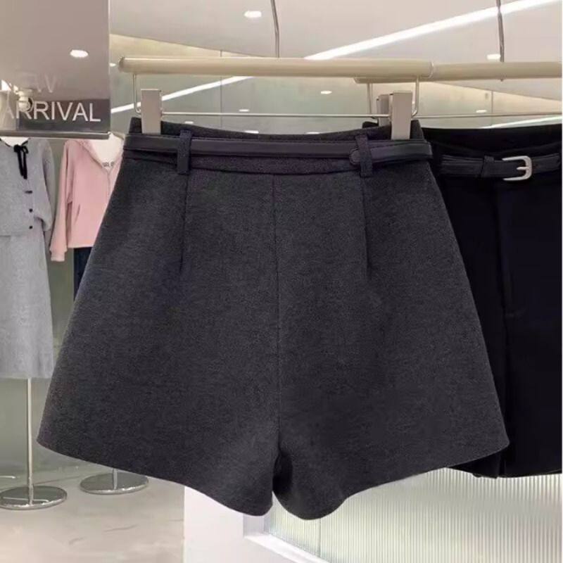 休闲毛呢短裤女2026早春宽松显瘦高腰大码a字阔腿裤外穿百搭靴裤
