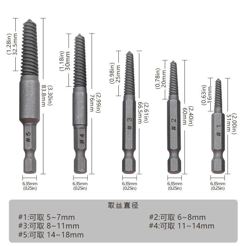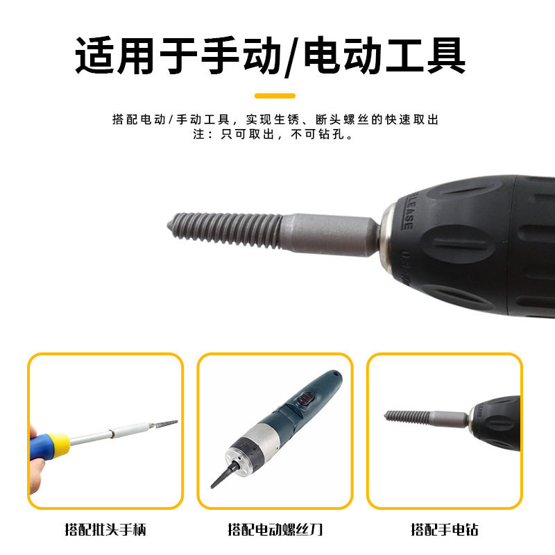滑牙断丝六角柄取出拆除工具5件套螺钉取出器断头螺丝取出器电动