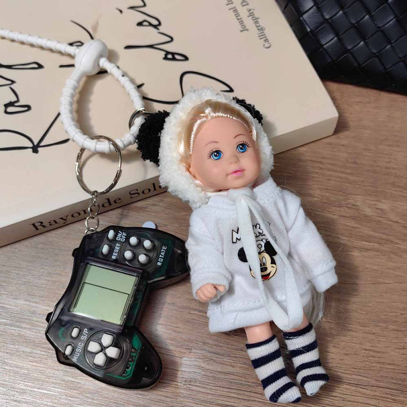 可爱韩系熊猫头套公仔 仿芭比娃娃挂饰游戏机钥匙扣包包挂件