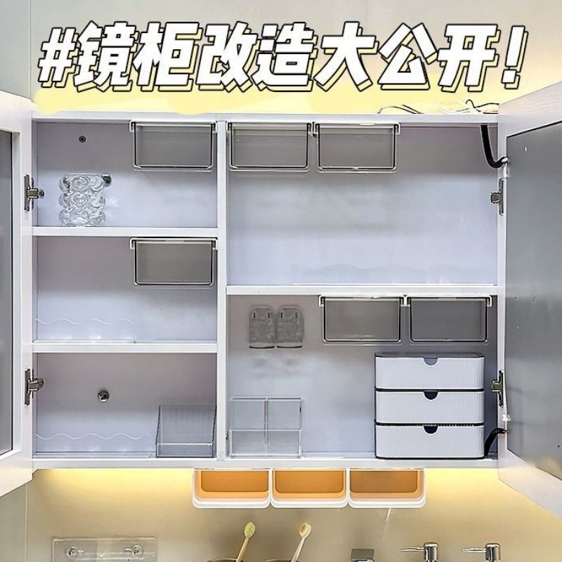 卫生间镜柜下方置物架免打孔浴室柜内抽屉式粉扑气垫眼影盘收纳盒