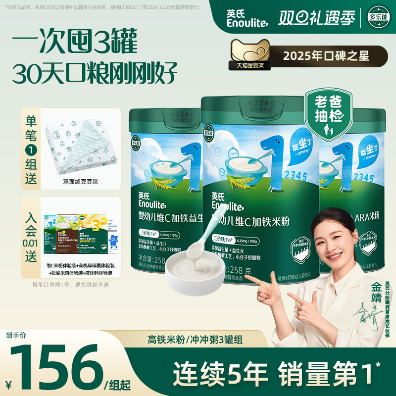 英氏高铁米粉3罐 宝宝米粉初添米糊快冲粥婴幼儿米粉6个月