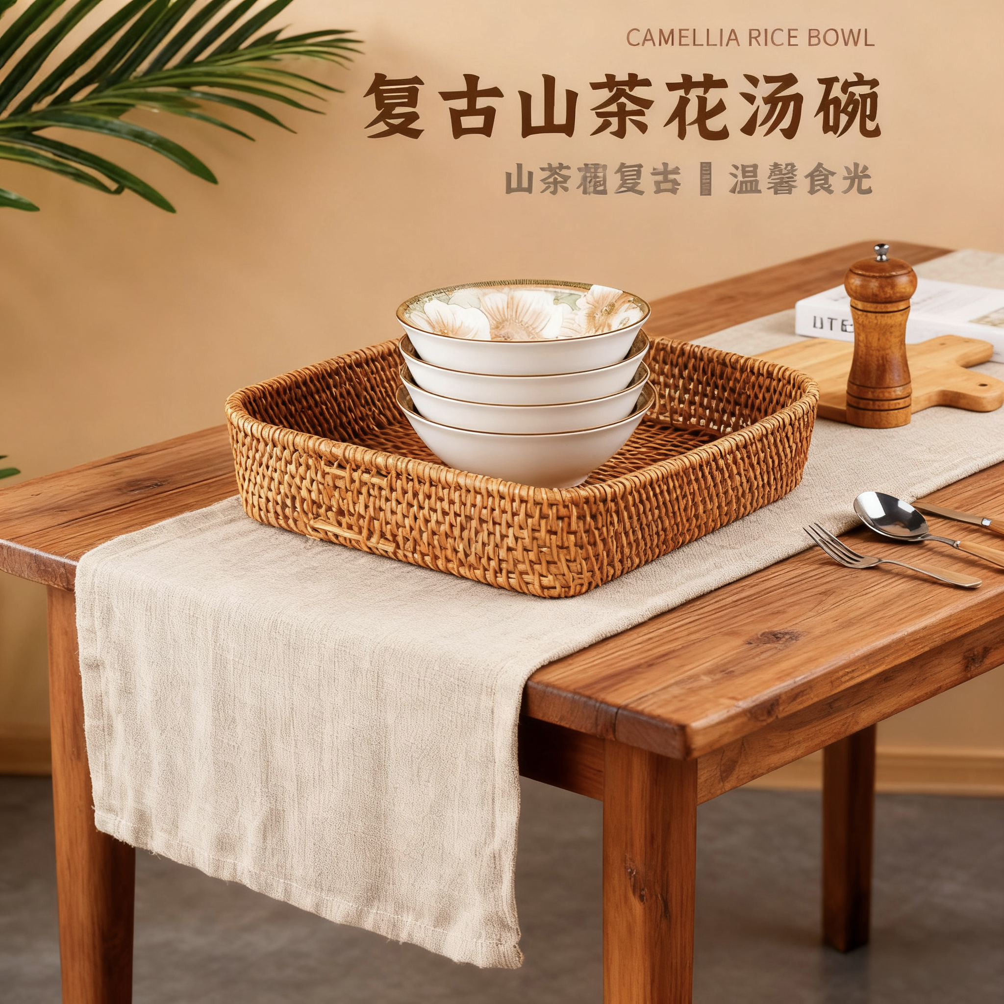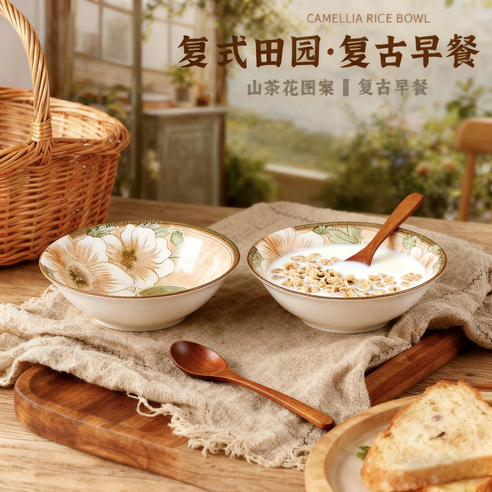 汤碗面碗家用2025新款山茶花斗笠饭碗陶瓷釉下彩大碗面碗面馆专用