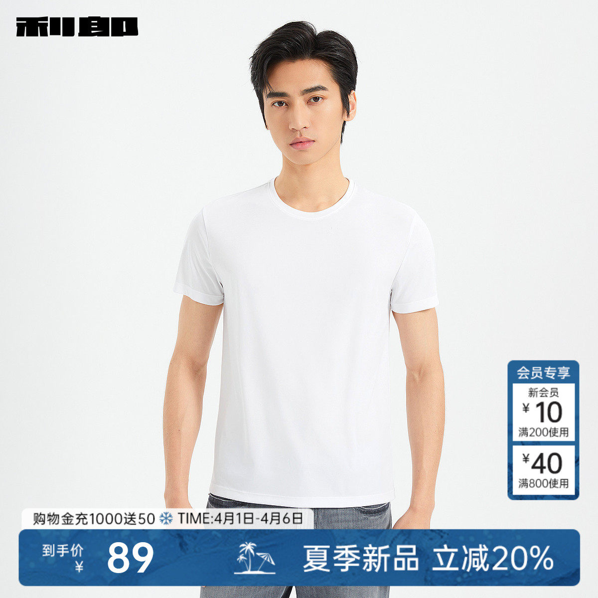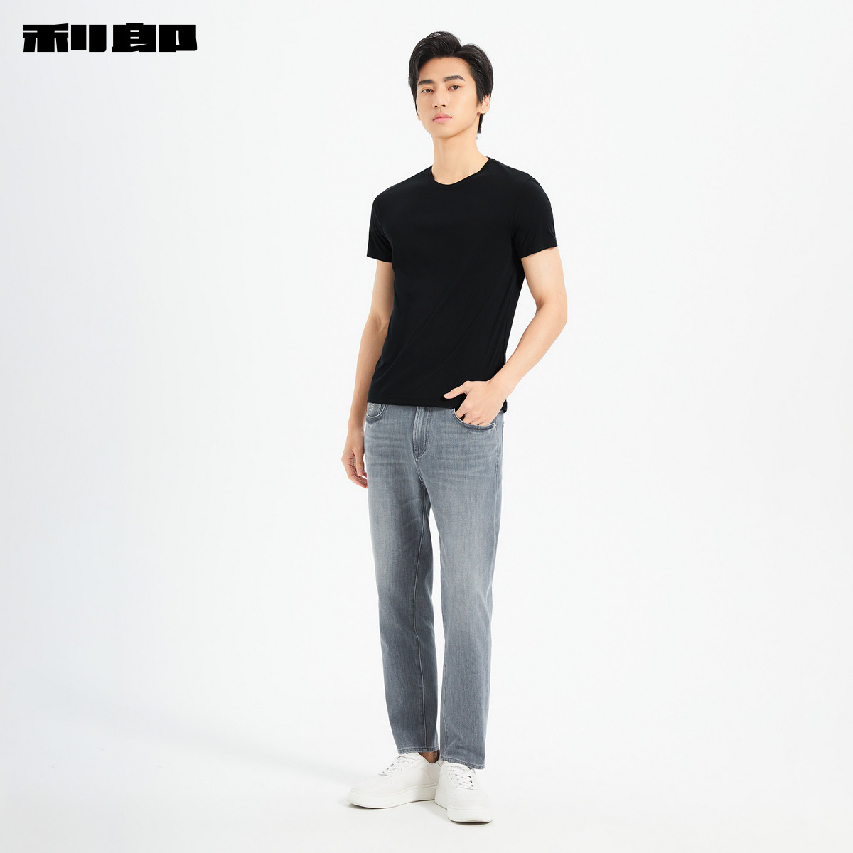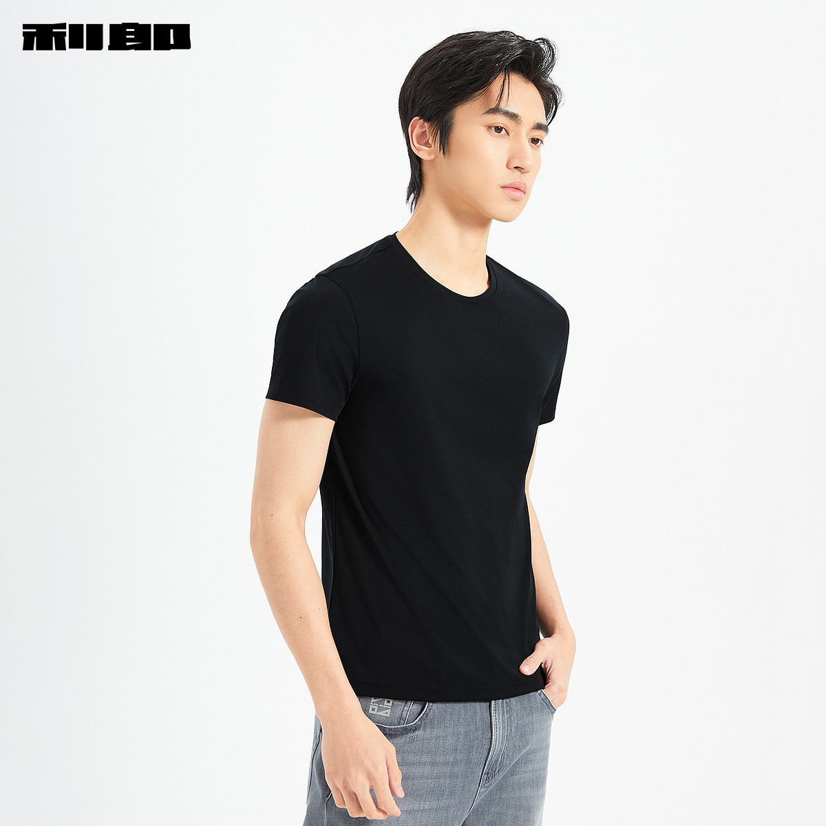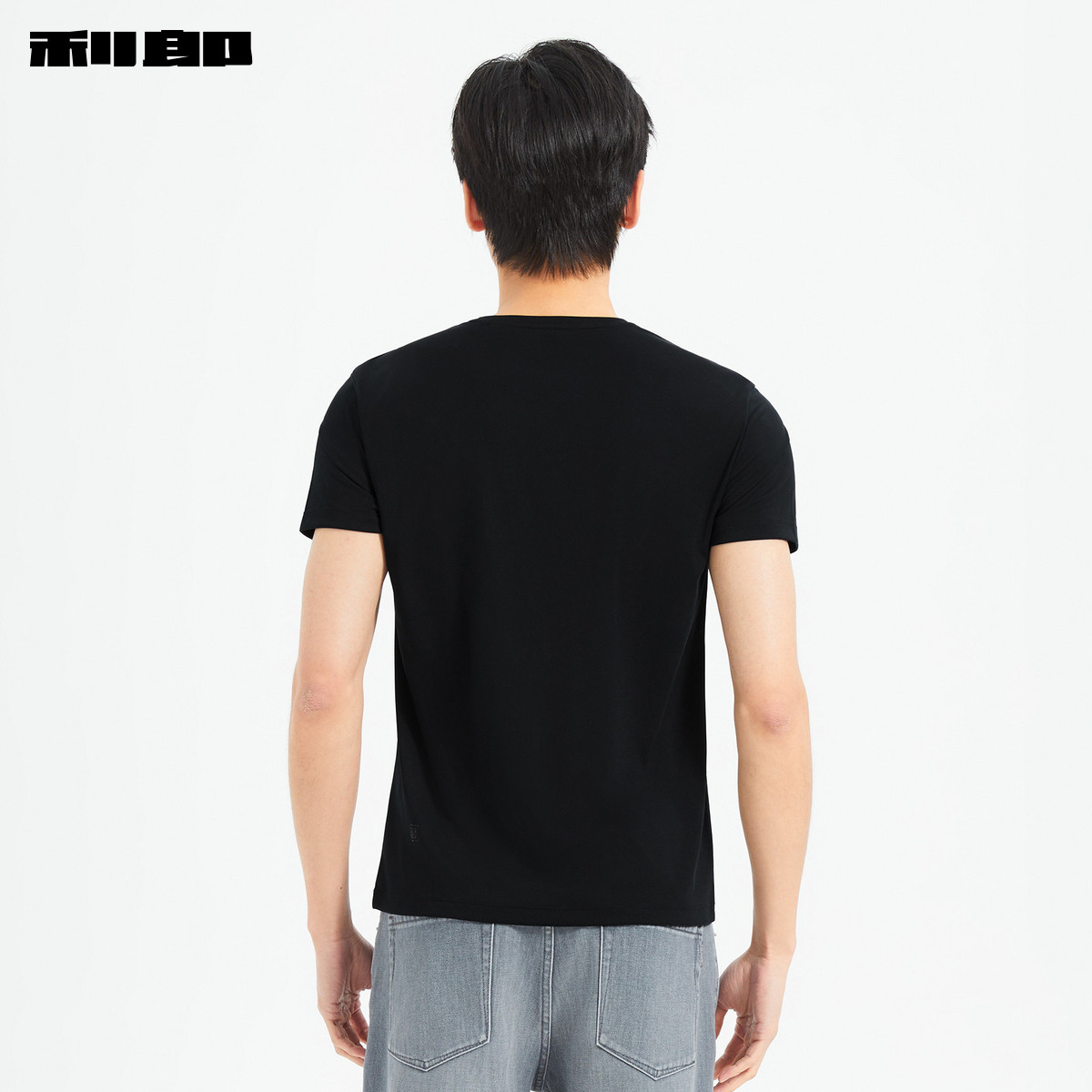 利郎官方 短袖内衣男士圆领印花夏季新款休闲黑色舒适男装T恤上衣