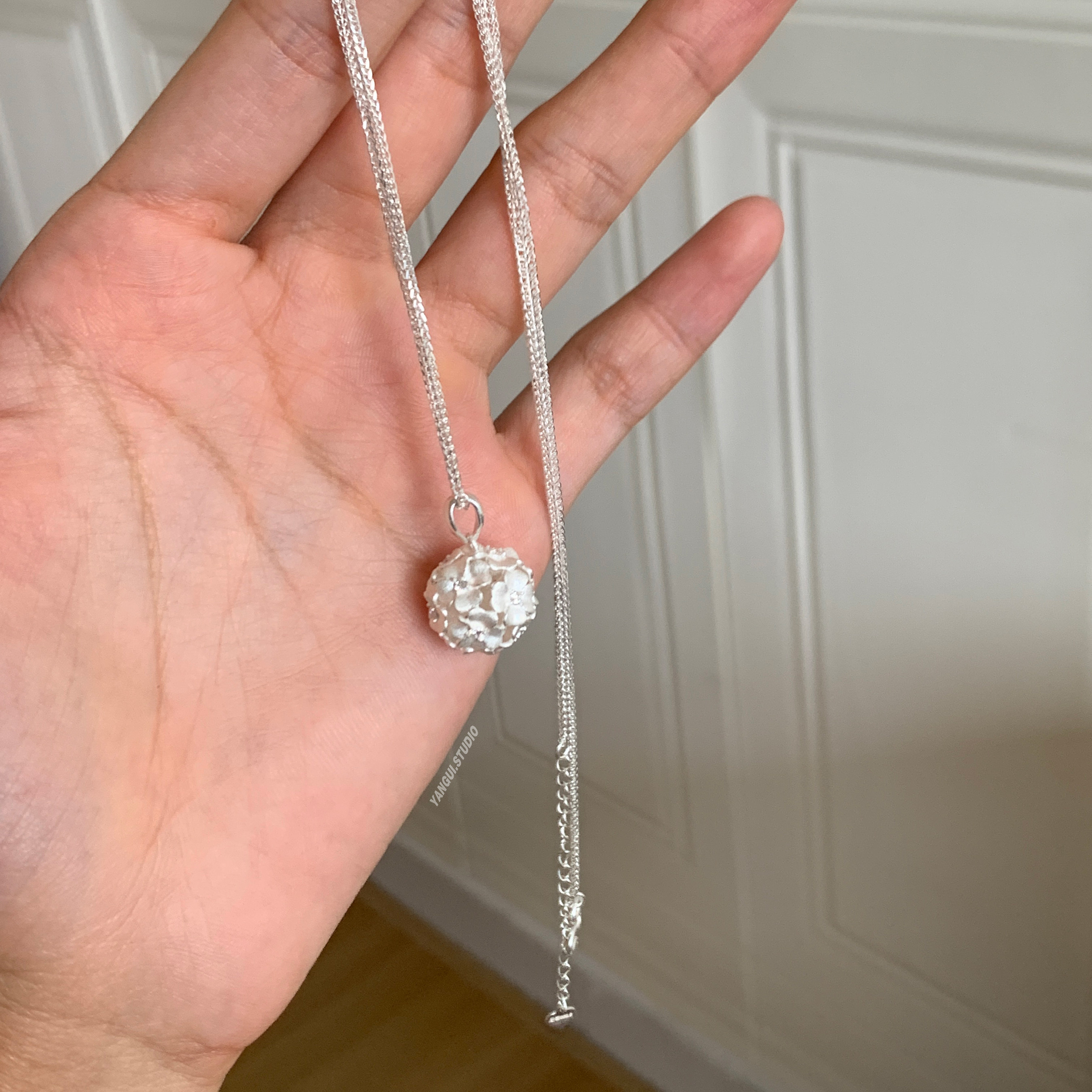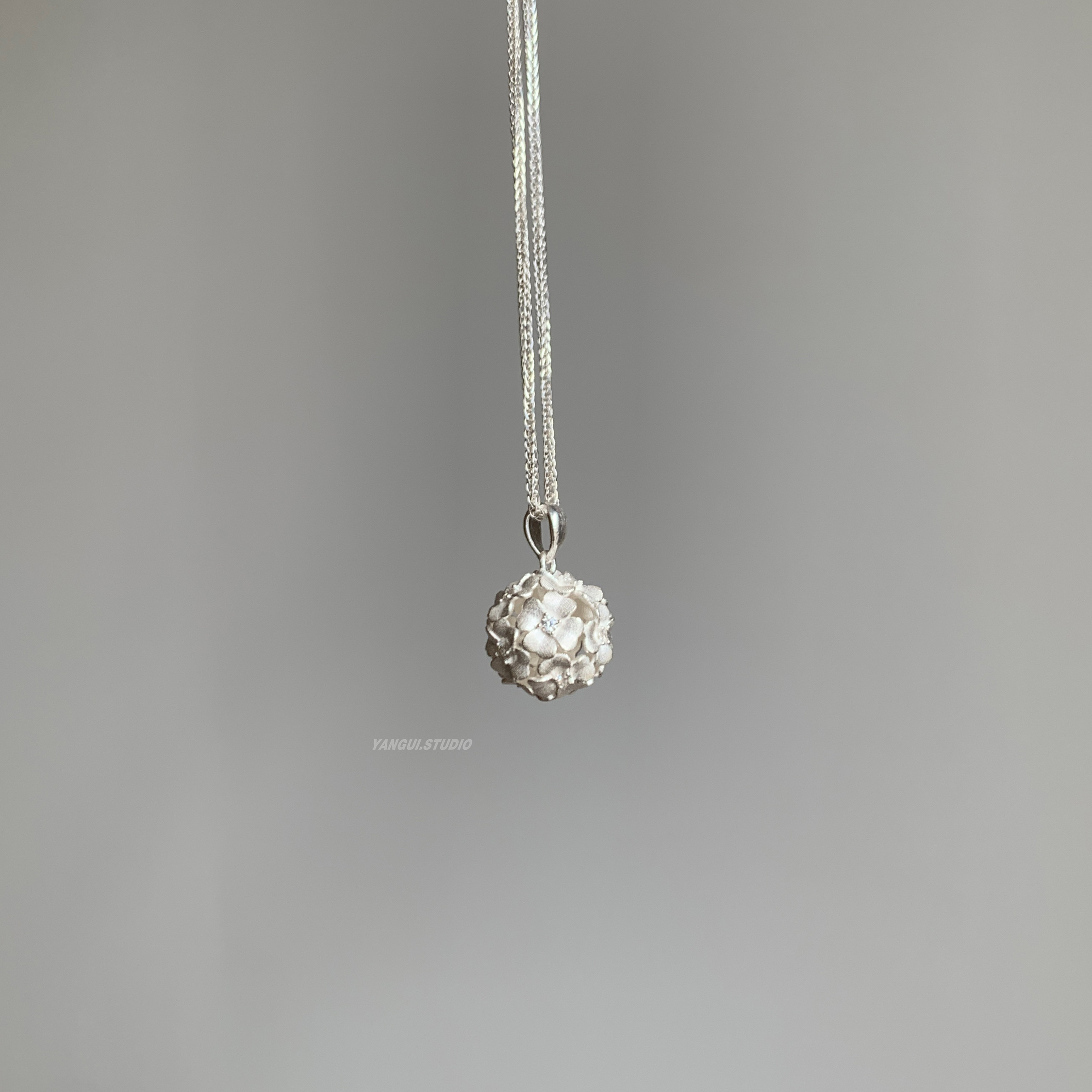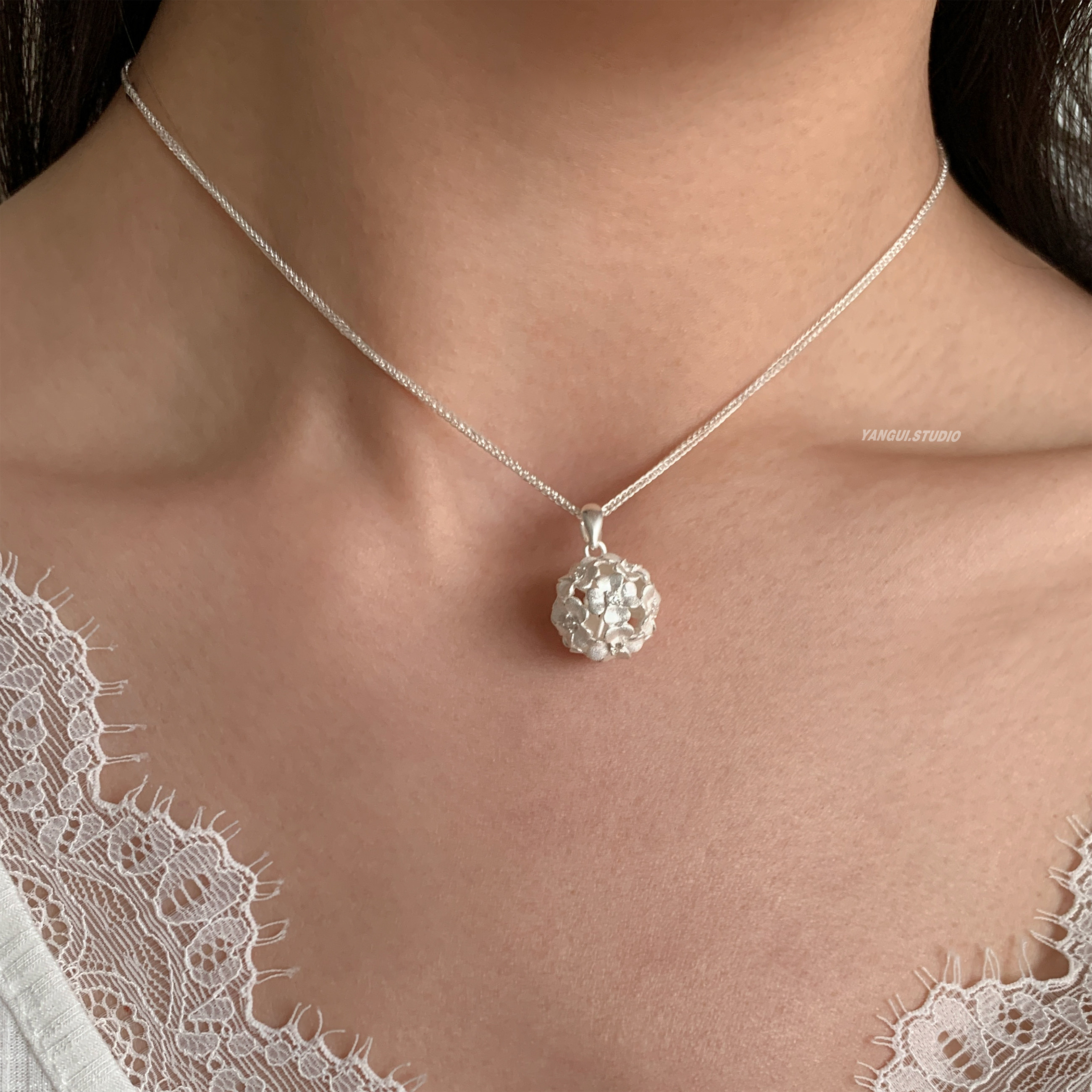 Yangui原创「花缕球」国风新中式锁骨链足银999.9百搭极简项链女