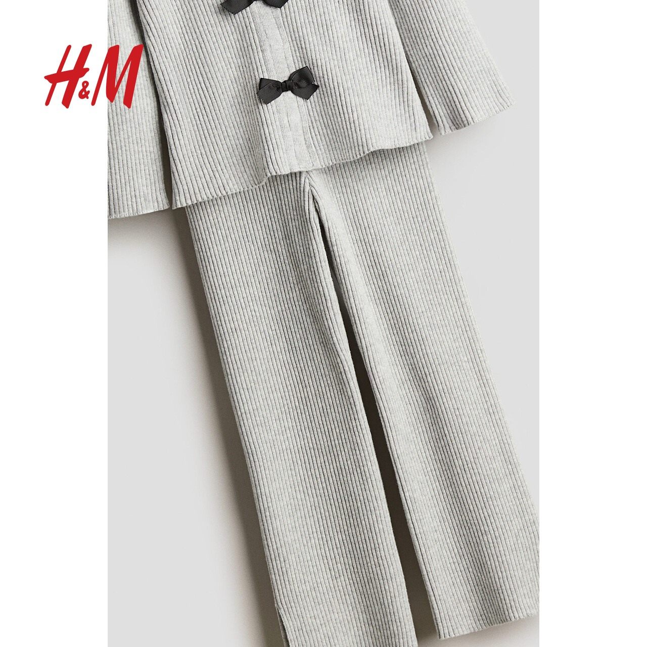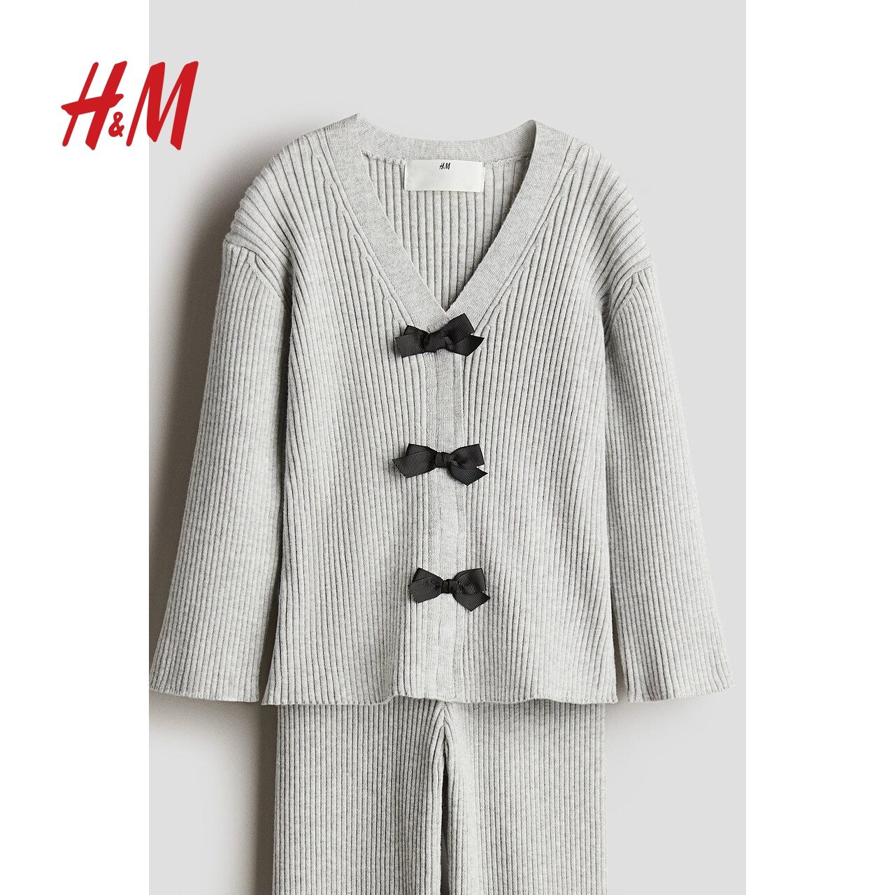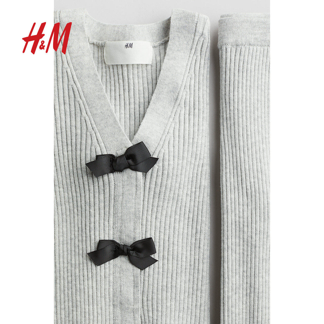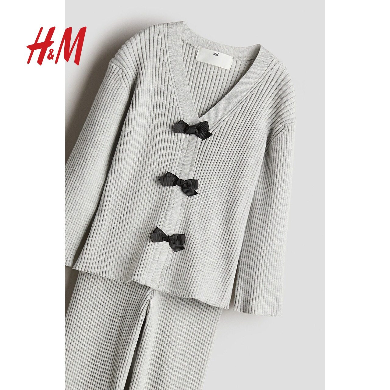 HM童装儿童女童套装2件式冬季v领针织开衫打底裤1260801