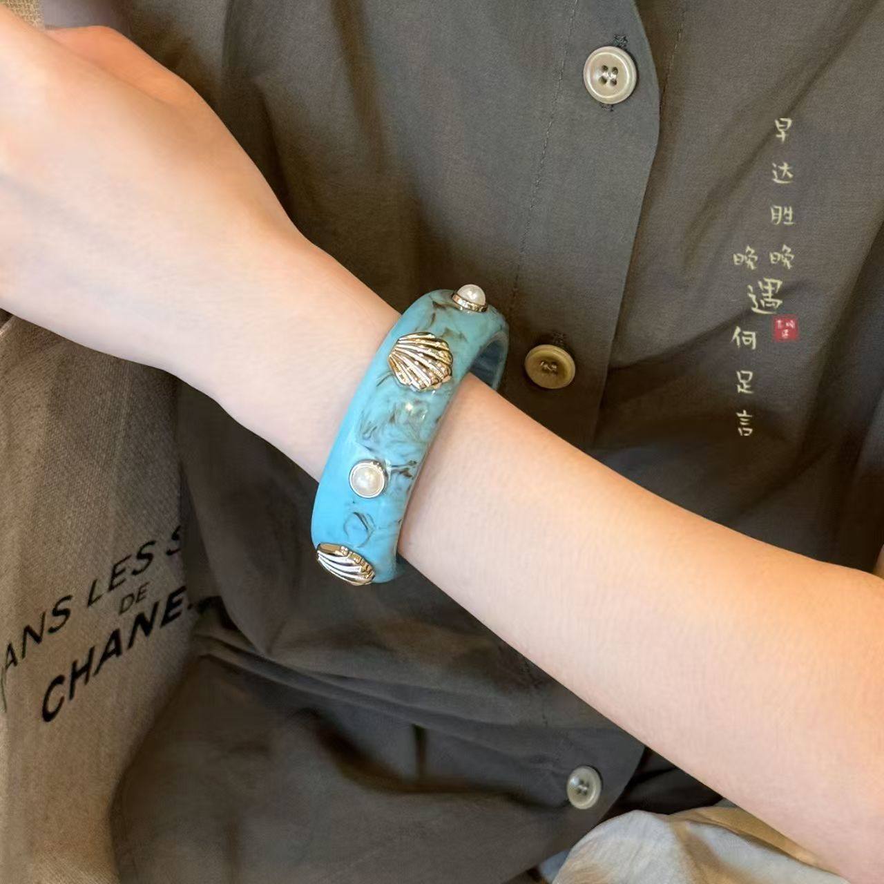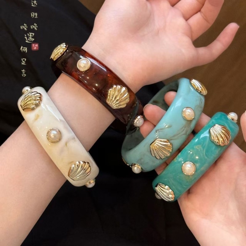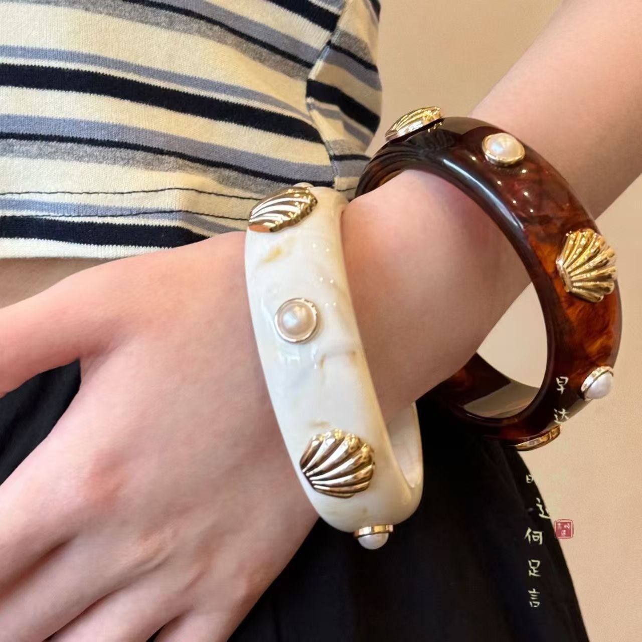 中古vintage海边度假风贝壳手镯女小众设计感手环学生党手饰琥珀