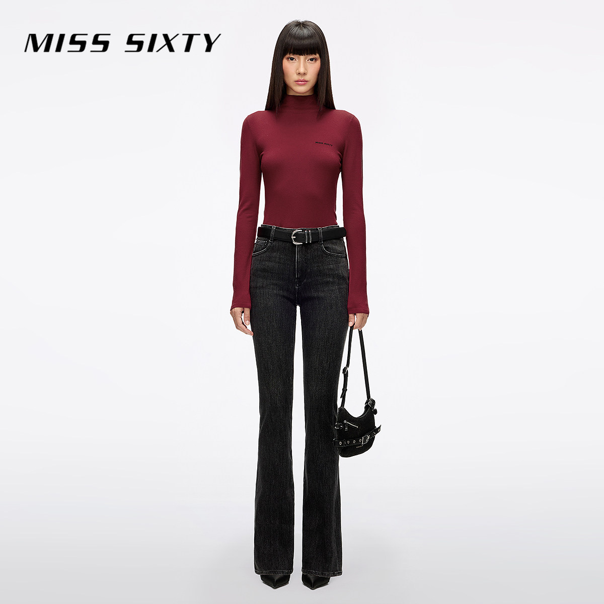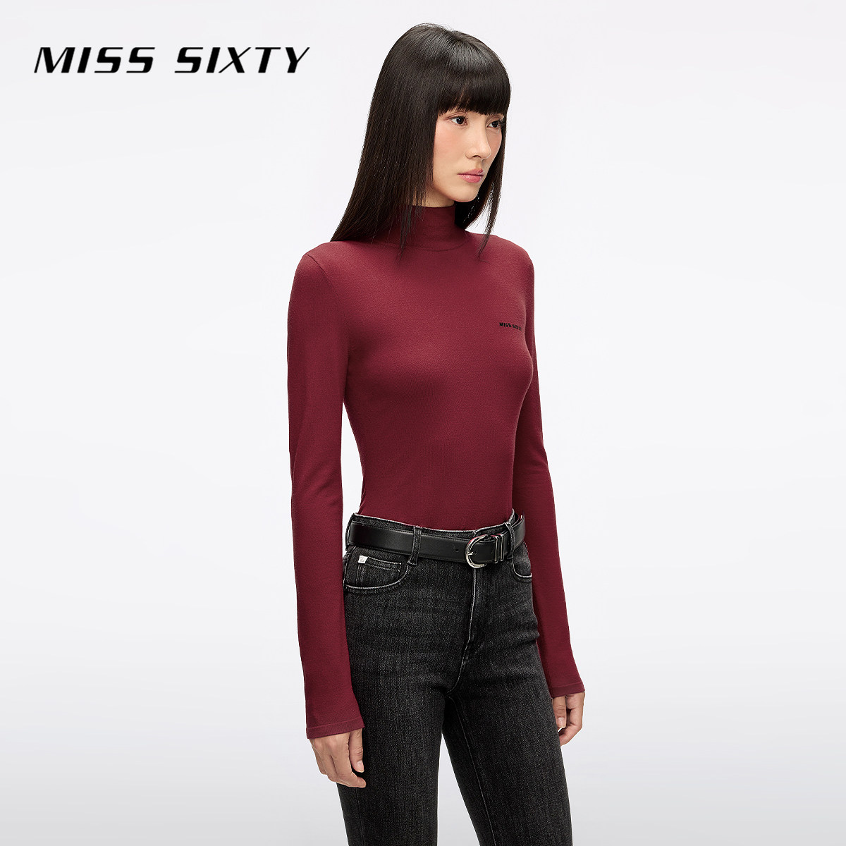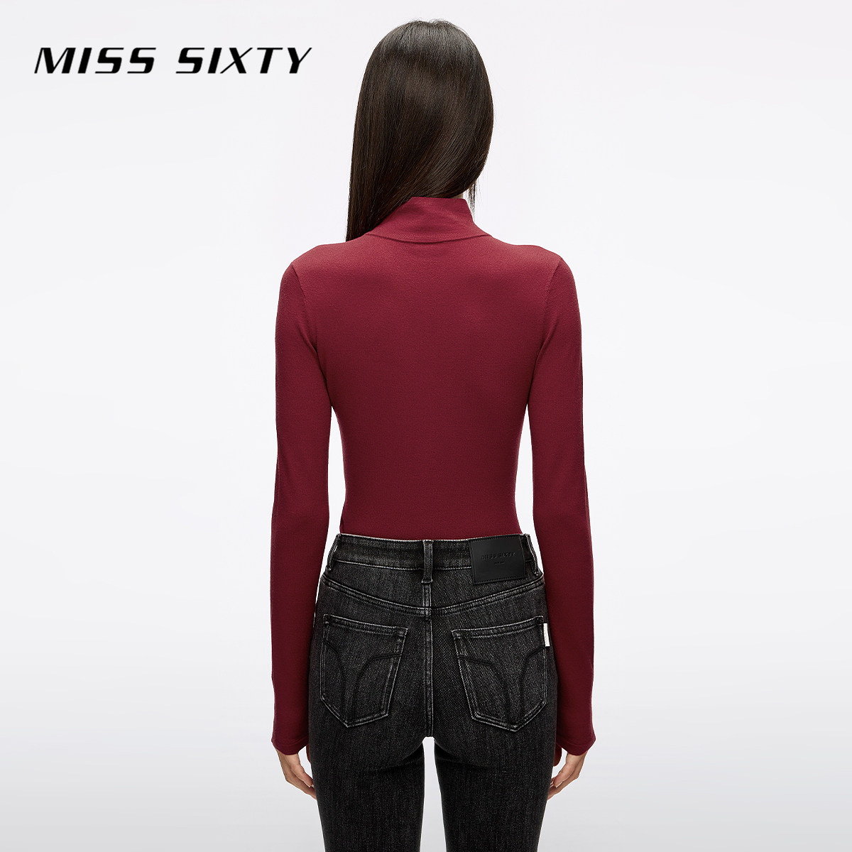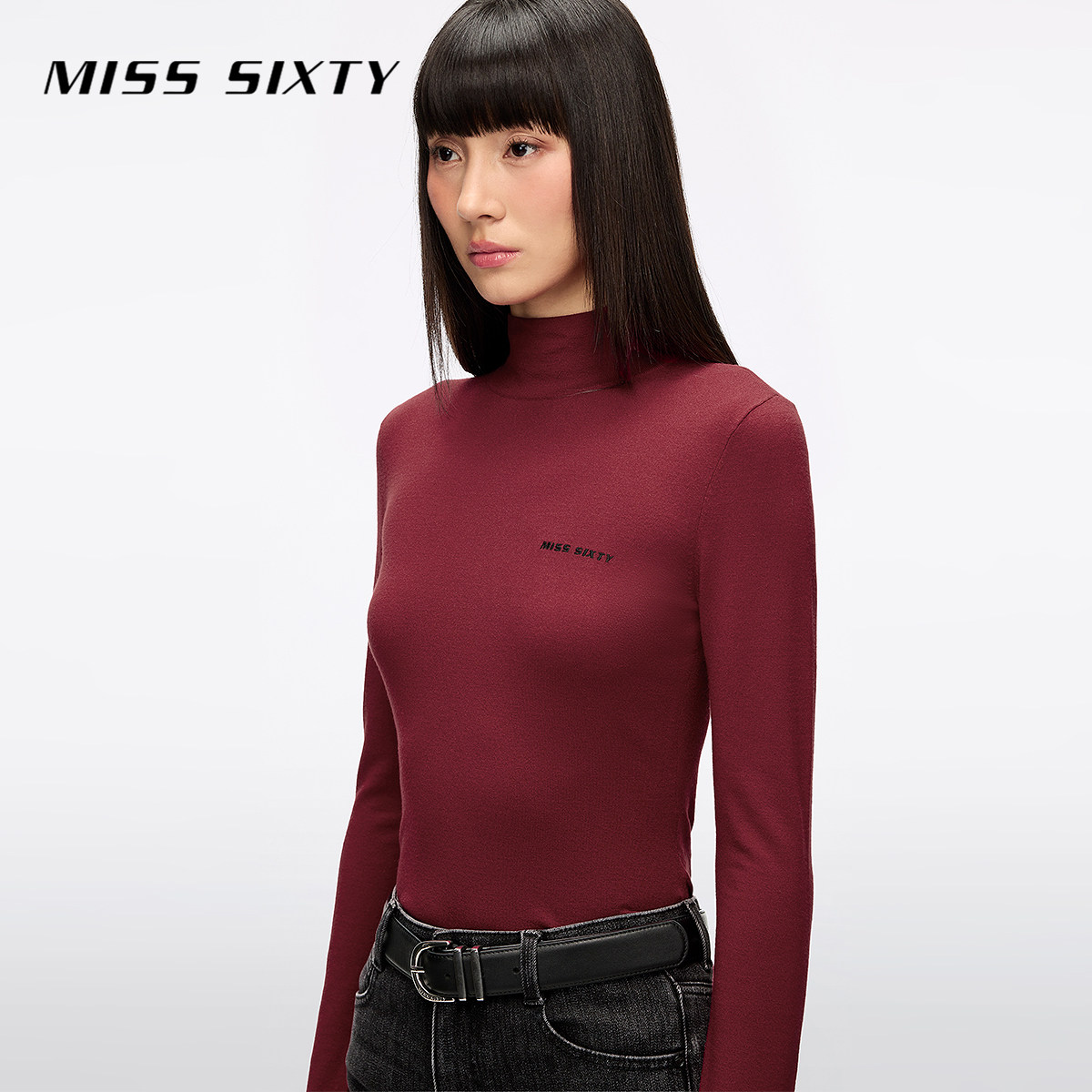 【新年穿搭】Miss Sixty25秋季新款针织衫女高领紧身红色上衣毛衣
