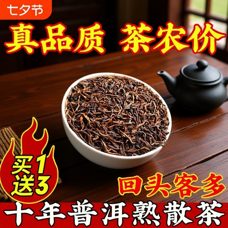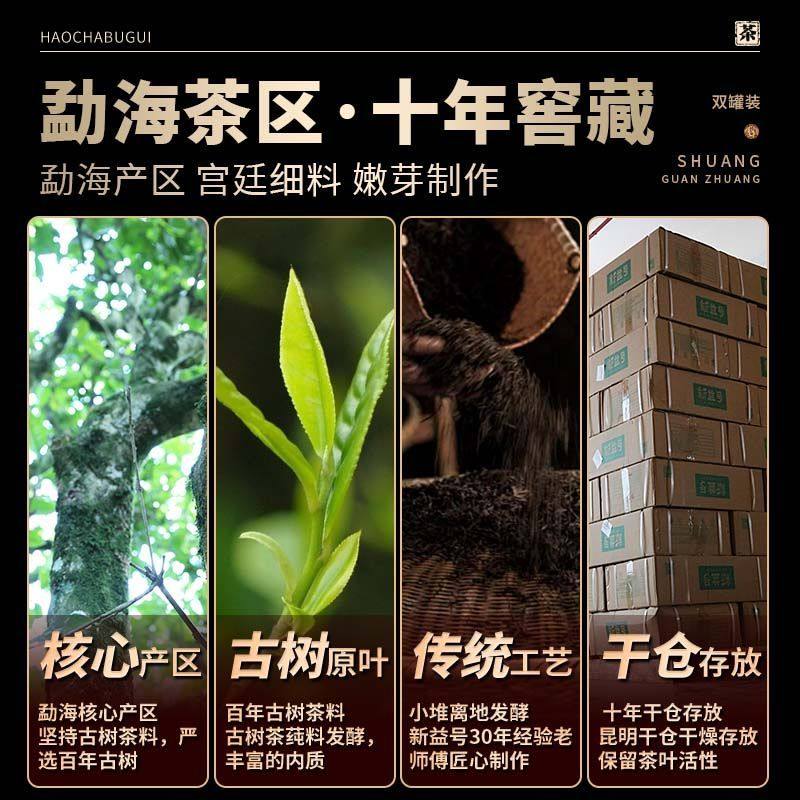 云南普洱茶熟茶散茶十年宫廷金芽特级陈年老茶熟普茶叶礼盒装古树