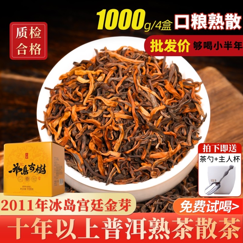 云南普洱茶熟茶散茶 1000g装特级勐海冰岛宫廷普洱熟茶叶十年陈香