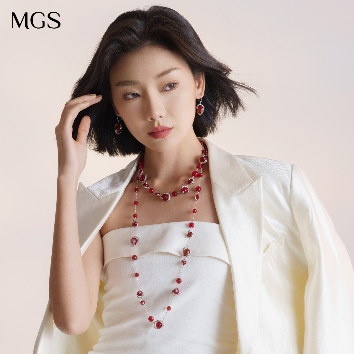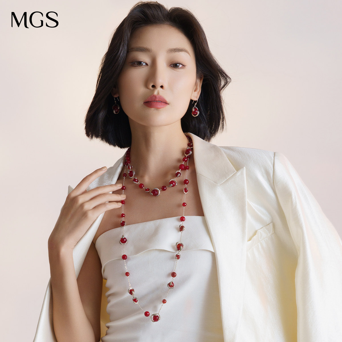 MGS/曼古银波尔多庄园蛇年红玛瑙串珠毛衣纯银项链轻奢新中式礼物