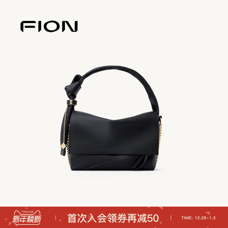 Fion/菲安妮真皮小方包简约通勤休闲包包女精致单肩斜挎包