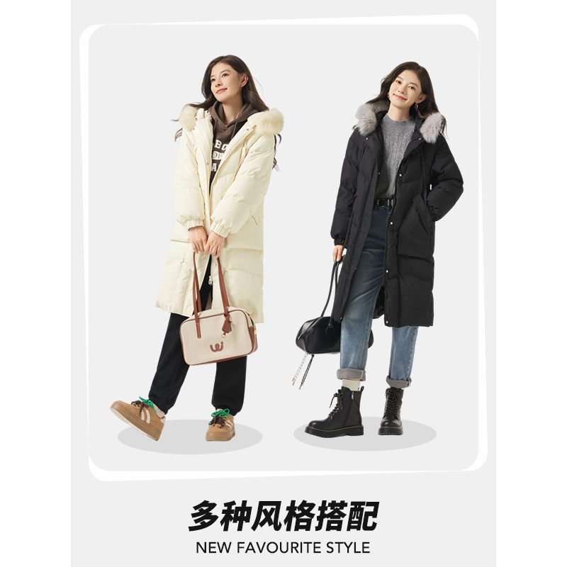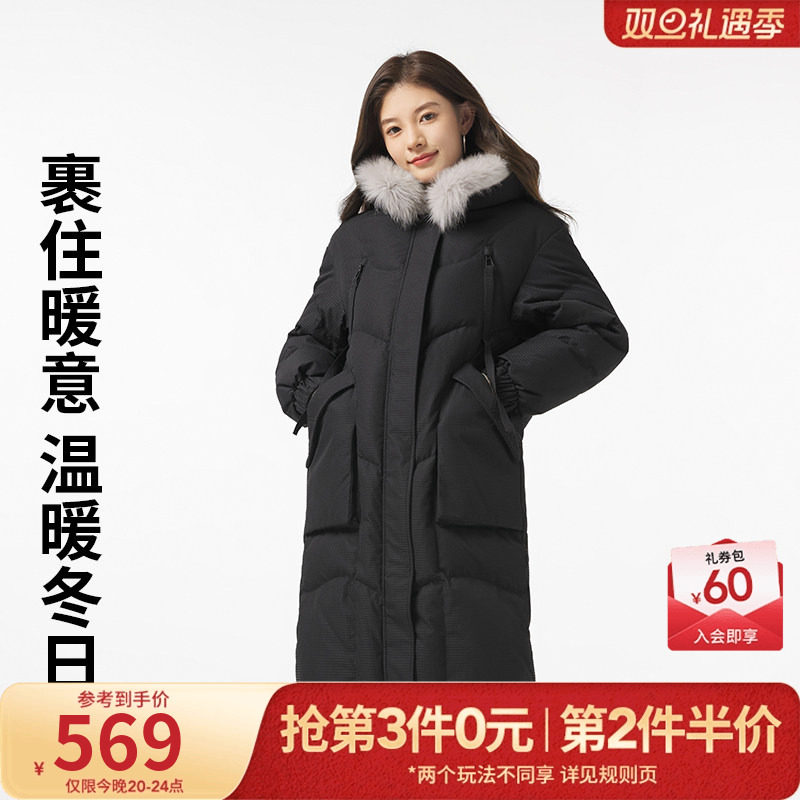 鸭鸭中戏pro羽绒服女冬季反季中长款羽绒服过膝加厚95绒波兰鸭绒J