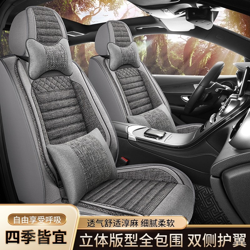 汽车坐垫亚麻座套全包围座垫四季通用新款网红棉麻透气布艺座椅套