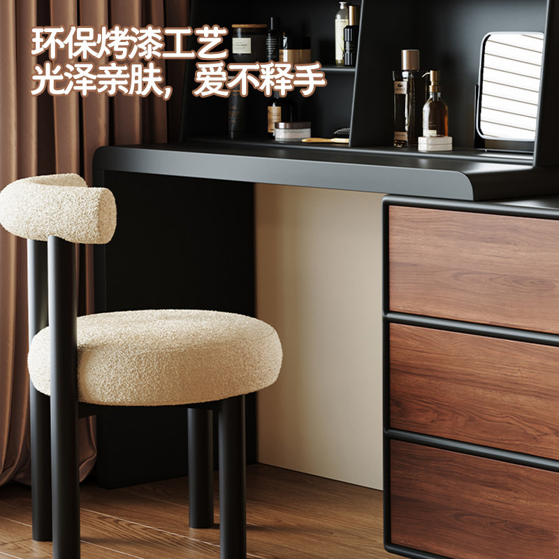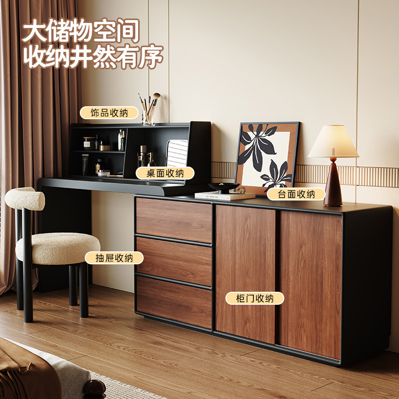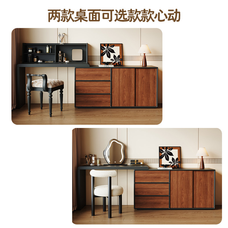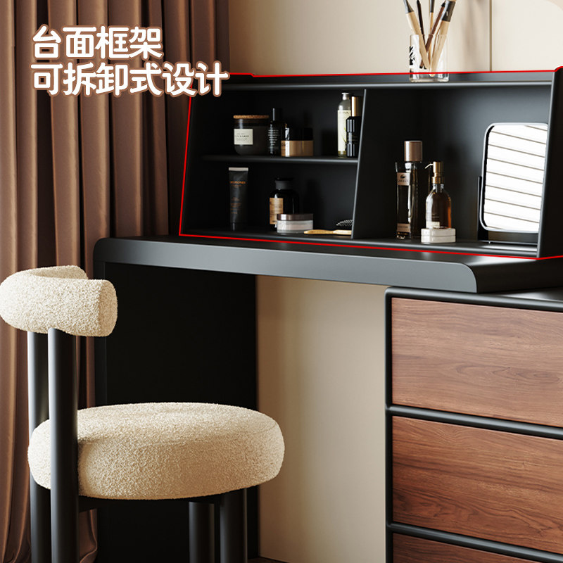 复古梳妆台斗柜一体小户型现代卧室简约中古风胡桃木色储物化妆桌
