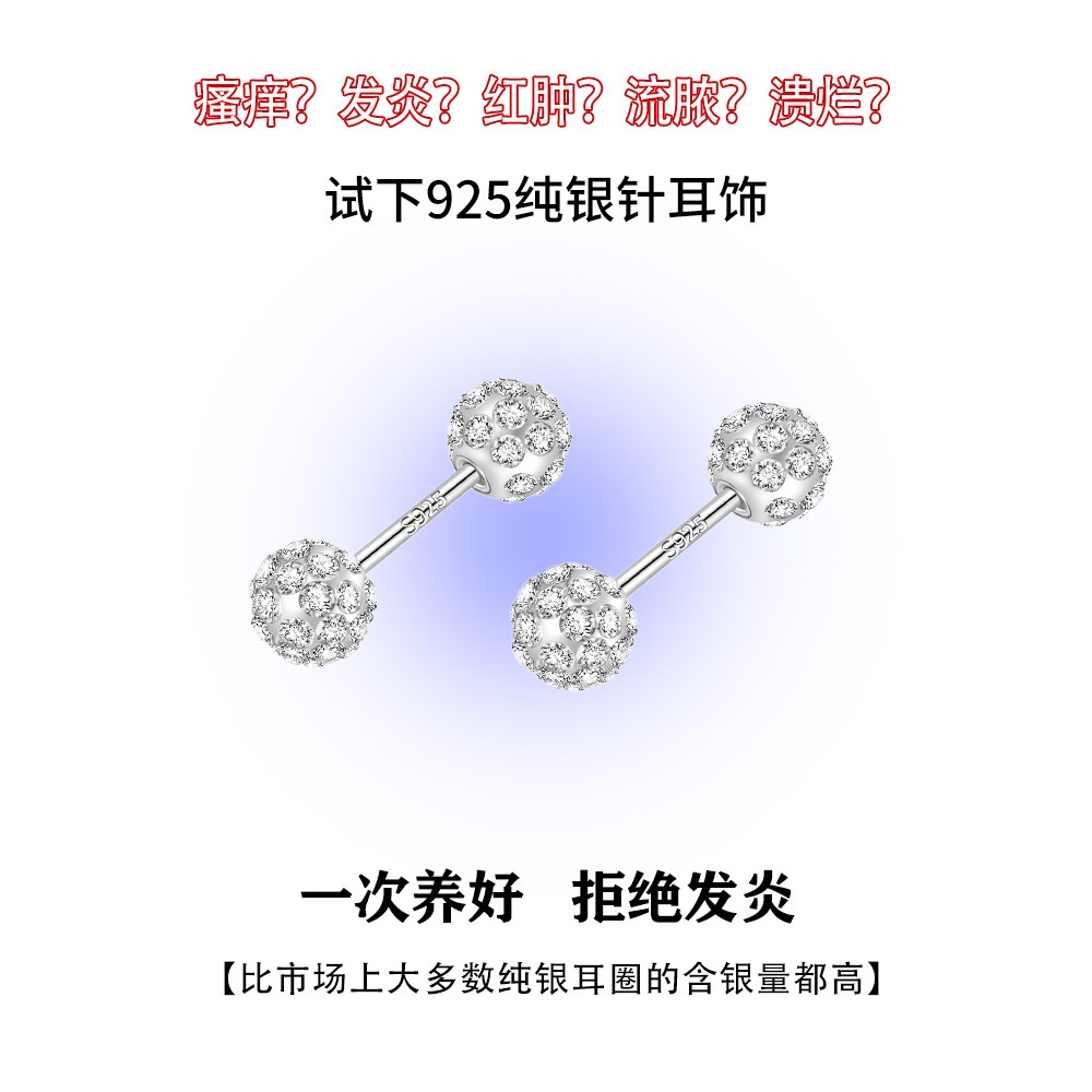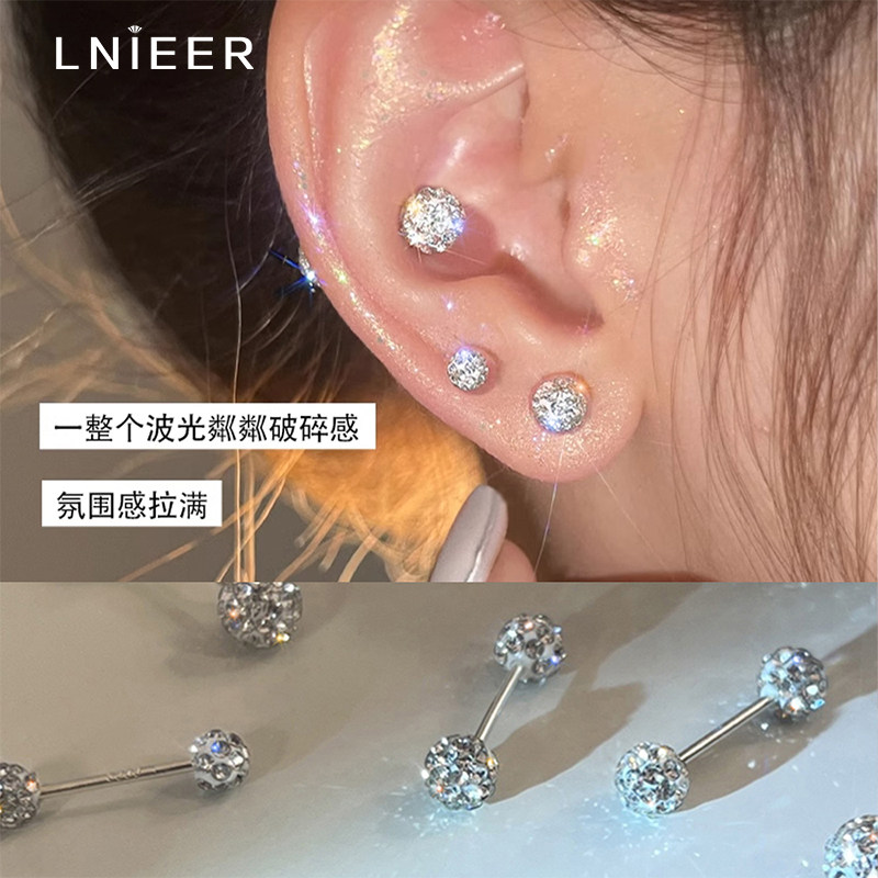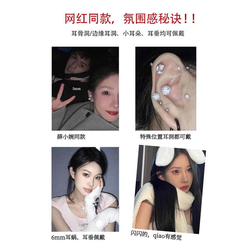 999纯银耳钉女养耳洞耳骨钉小众高级感锆石耳蜗钉水钻耳环银耳饰