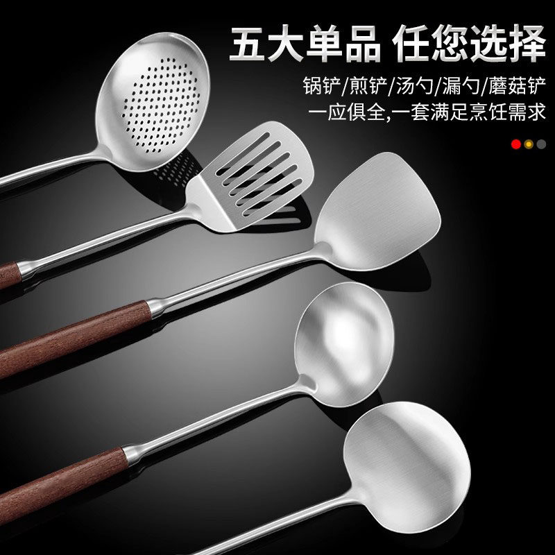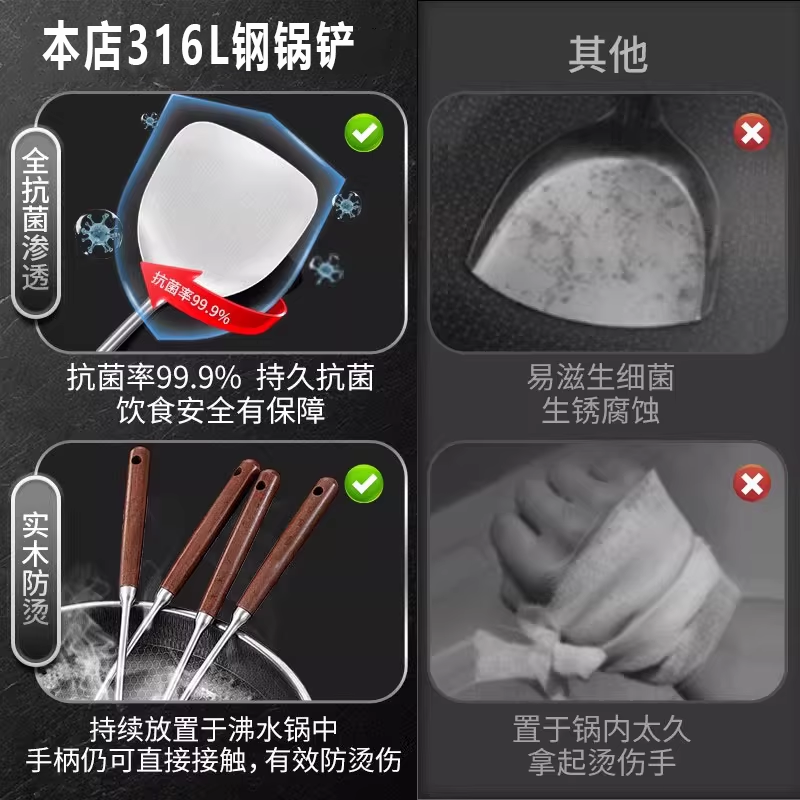 不锈钢锅铲316食品级家用炒菜铲子木柄把铲勺加厚铁锅铲厨具套装