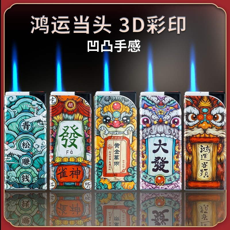 金属防风直冲打火机可充气一次性国风潮流耐用高颜值商超批发火机