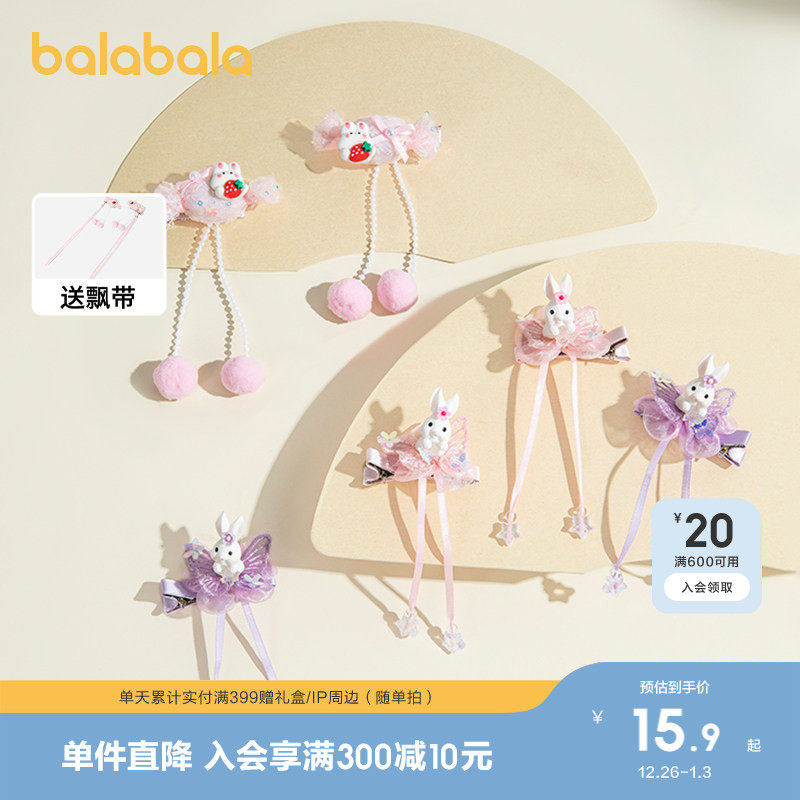 巴拉巴拉儿童头饰女童国风连衣裙发饰甜美可爱发夹兔子不伤发生日