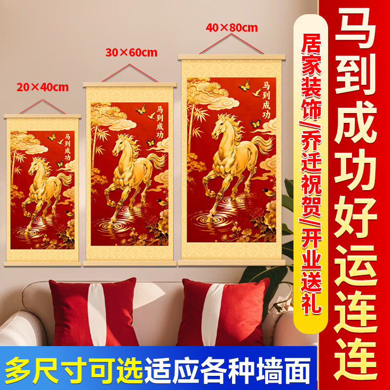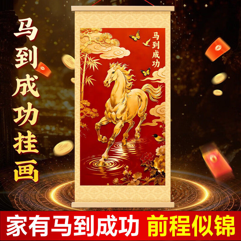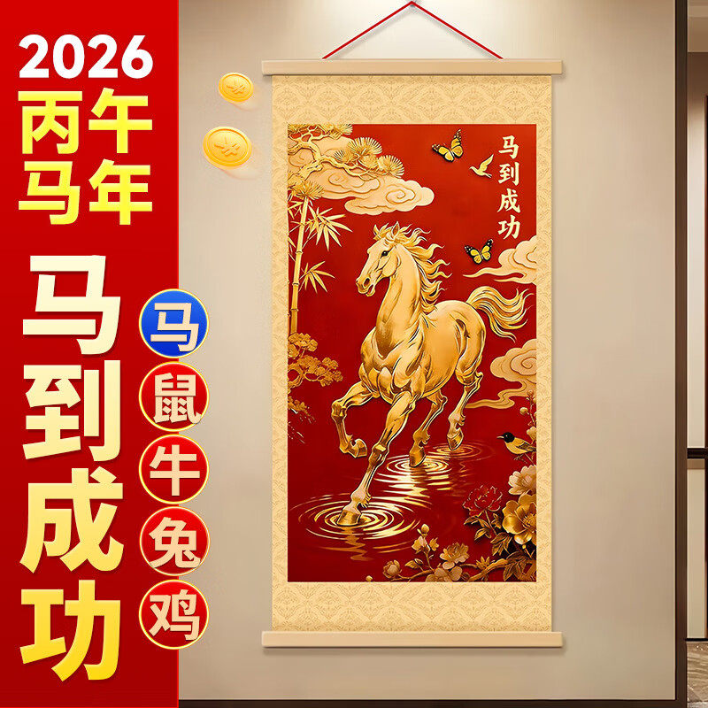 2026年马到成功新中式新年摆件好寓意客厅背景装饰画入户玄关挂画
