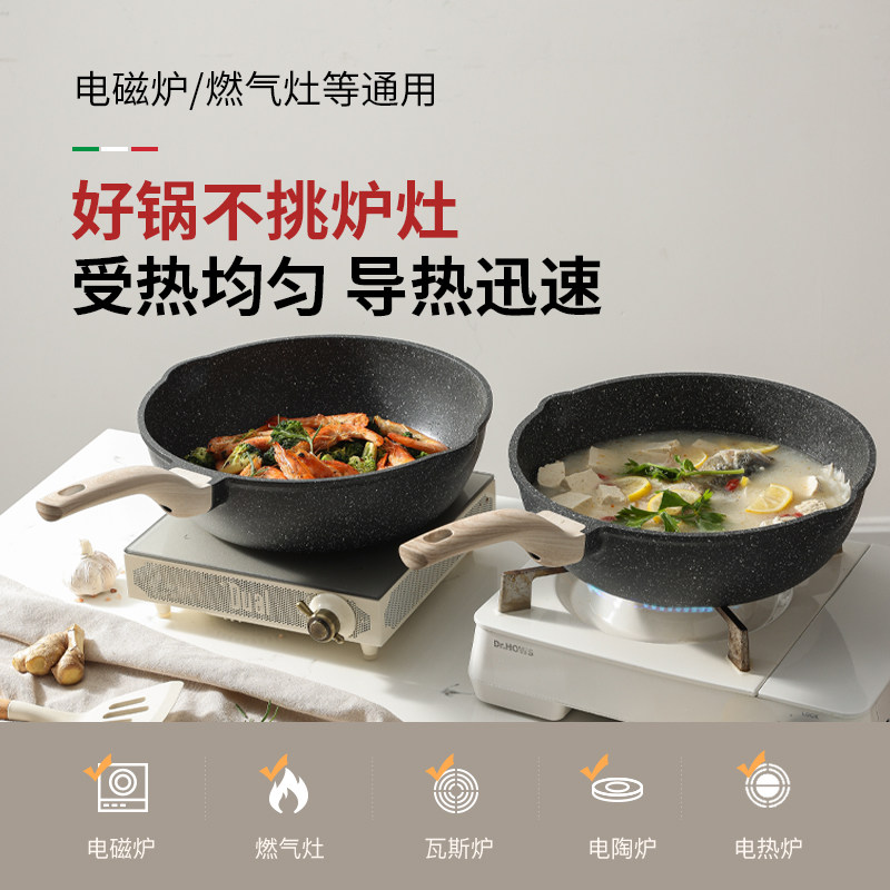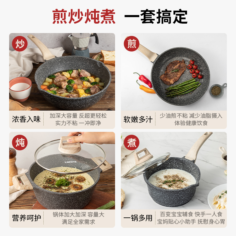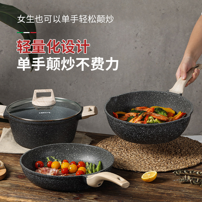麦饭石锅具套装组合全套家用不粘锅三件套电磁炉专用炒锅汤锅煎锅