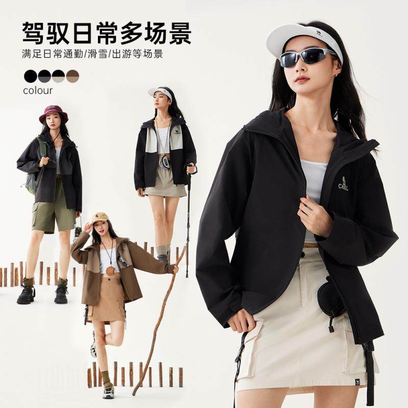 骆驼女装单层冲锋衣2025新款秋冬户外防风防水连帽立领男女款外套