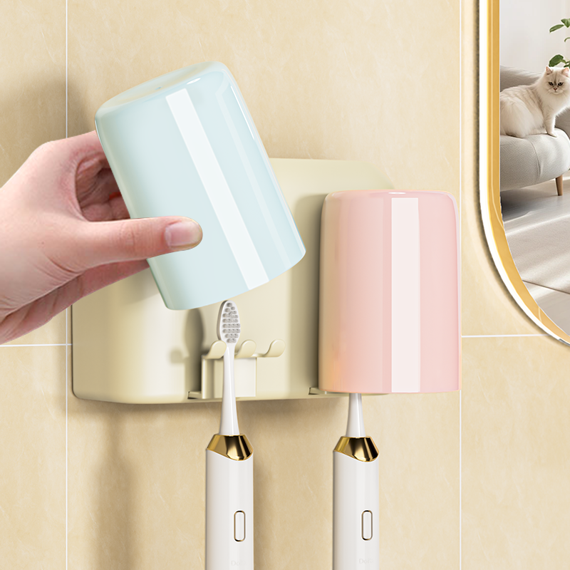 牙刷置物架免打孔漱口杯刷牙杯卫生间壁挂式家庭电动架子浴室四口