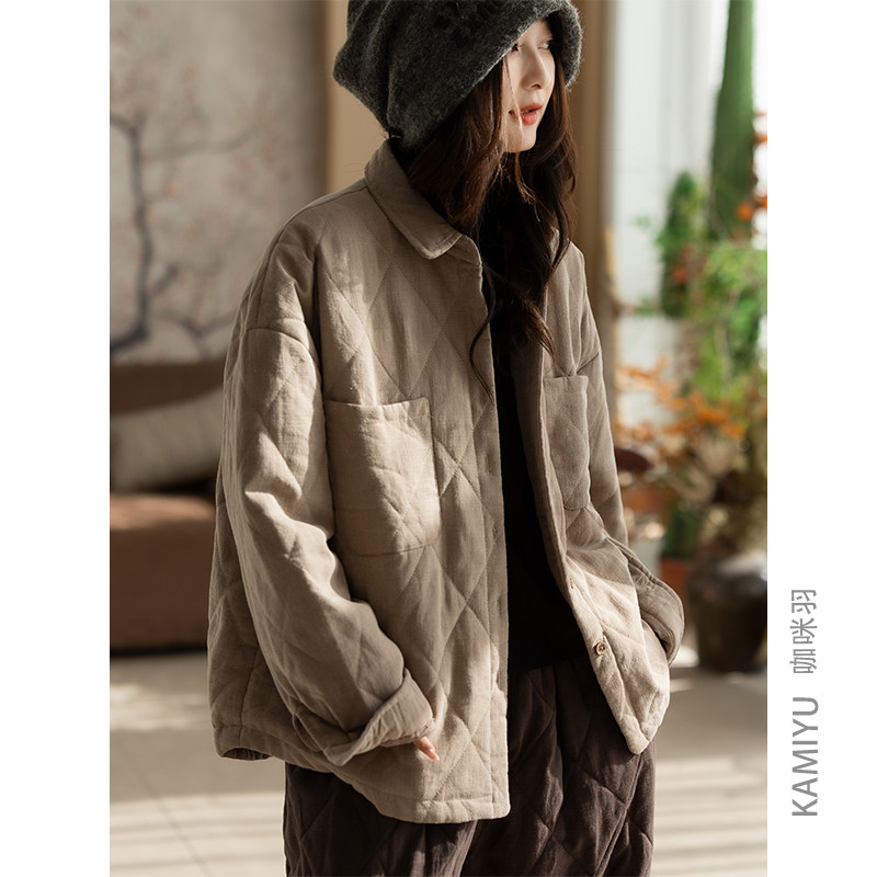 咖咪羽100%汉麻棉服女冬装休闲宽松百搭复古流行好看女装上衣外套