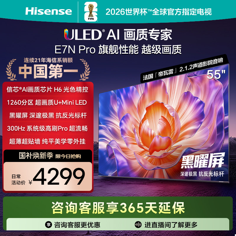 海信电视E7N Pro 55英寸 U+MiniLED 黑曜屏 以旧换新补贴电视机