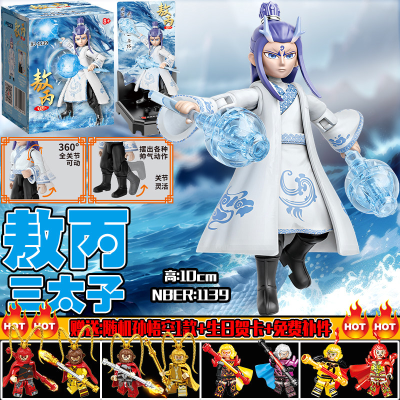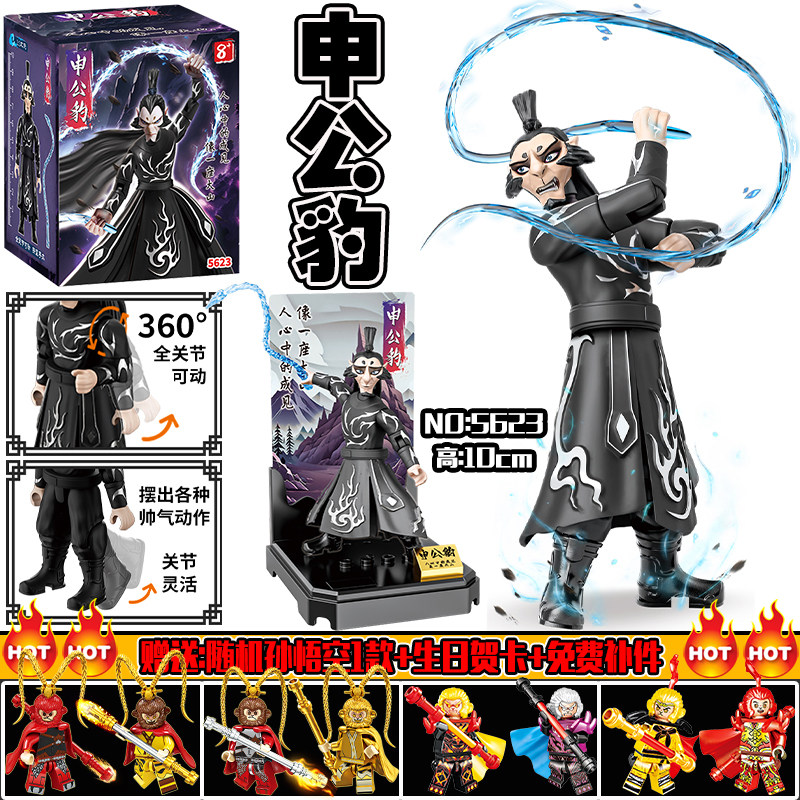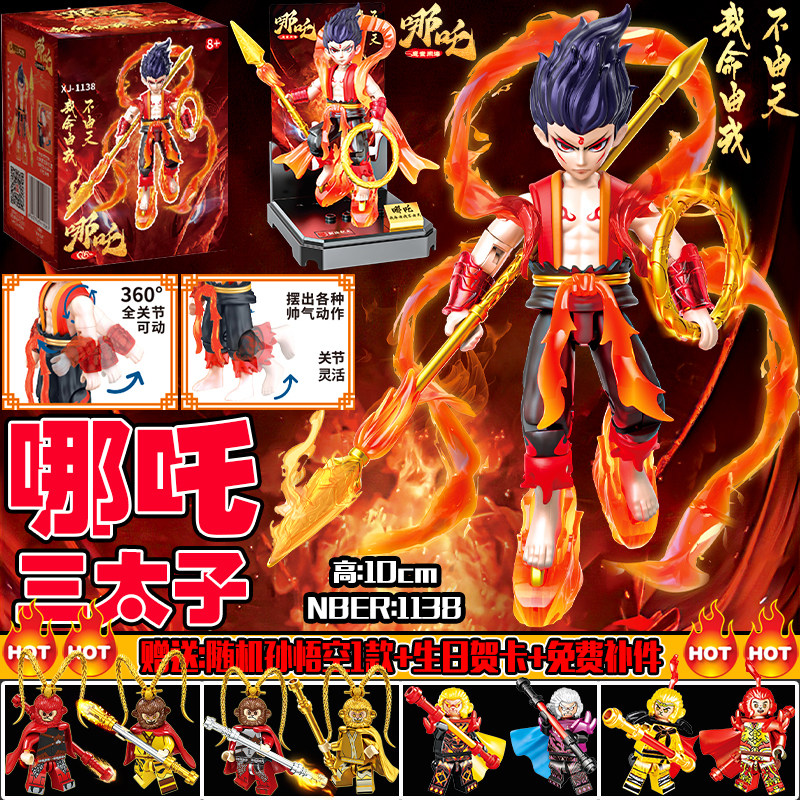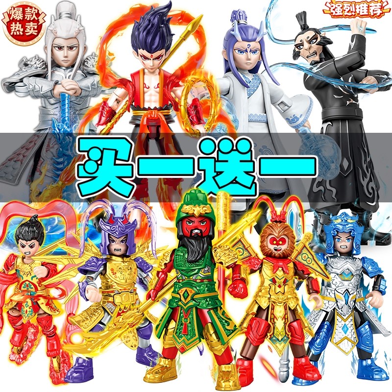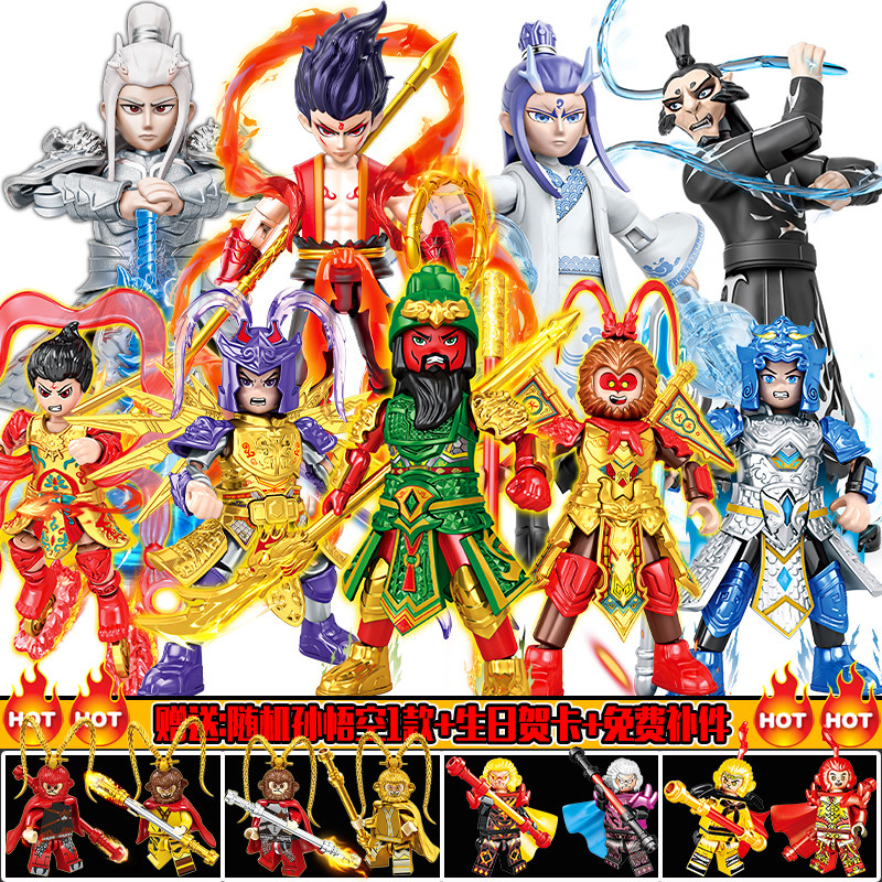 国风哪吒孙悟空吕布积木人五虎上将关羽赵云儿童拼装便宜清仓玩具