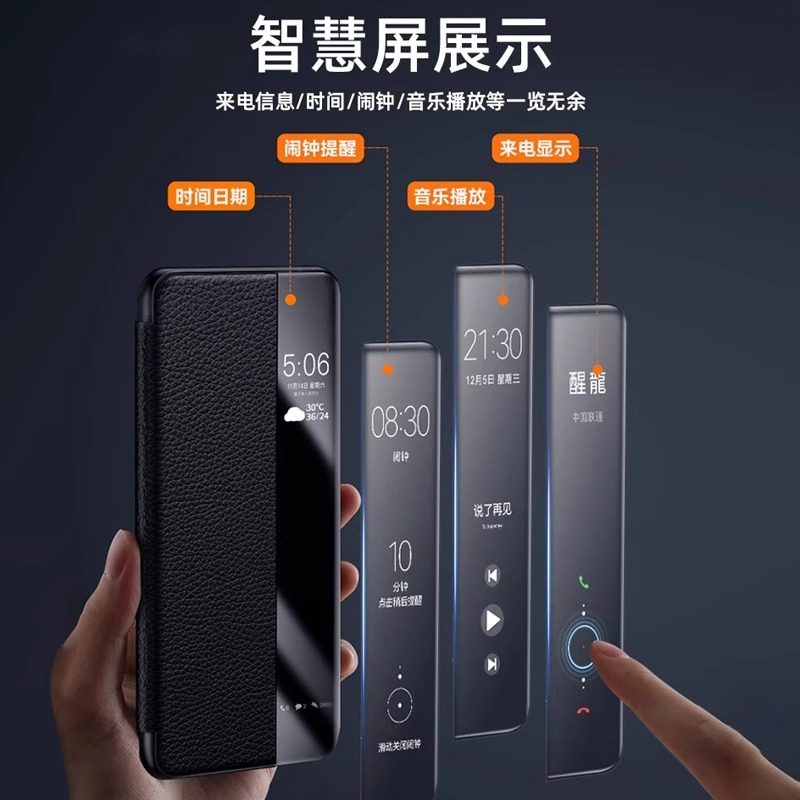 适用华为Mate80pro手机壳新款真皮翻盖Mate80保护套智能视窗mete80素皮mt80全包m80防摔mate80por+商务外壳