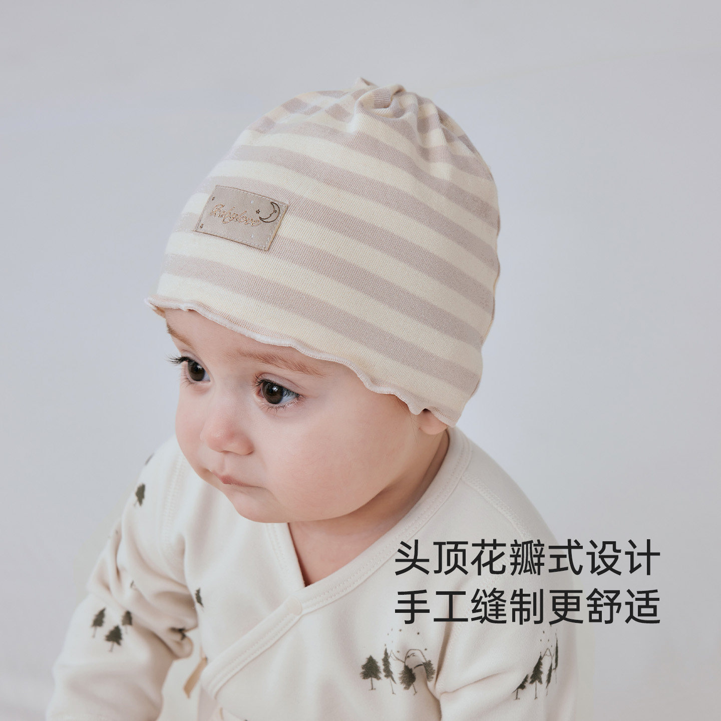 babylove婴儿胎帽秋冬男女宝宝护囟门帽新生儿条纹帽子满月包头帽