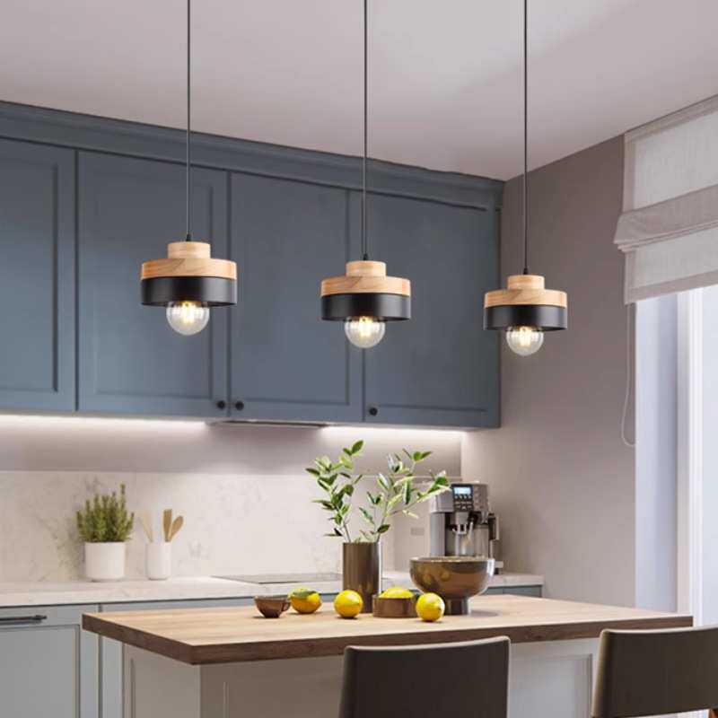 现代简约创意木头铁艺led吊灯吧台圆形方形餐吊灯卧室灯饰灯具