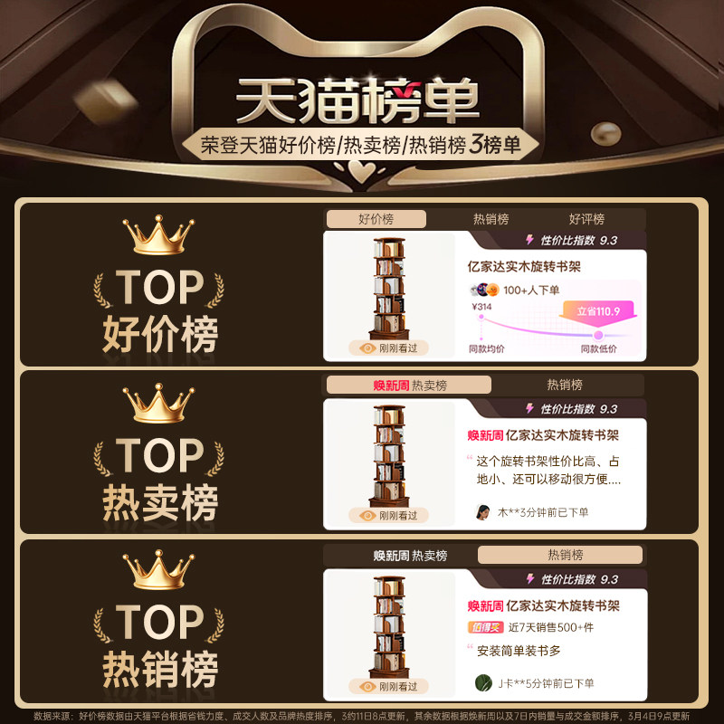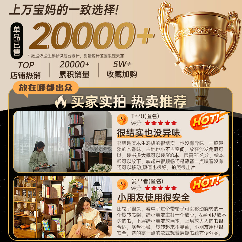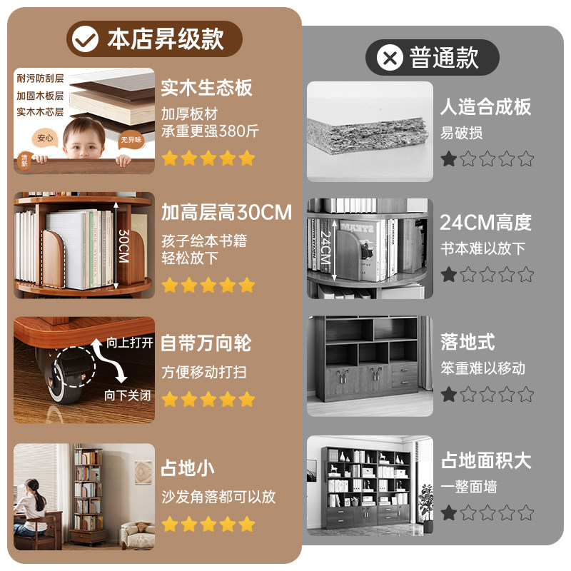 旋转书架落地置物架家用客厅置物柜简易储物柜儿童实木转角柜书柜