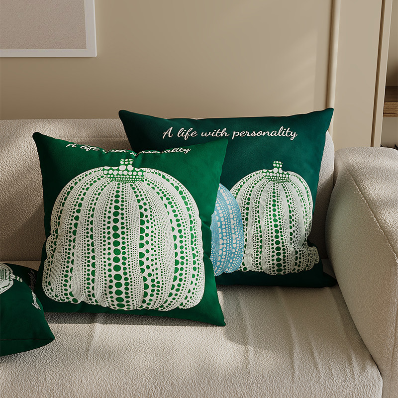 奶油风腰枕长方形沙发靠垫卧室床头客厅雪尼尔绿色沙发抱枕靠枕套