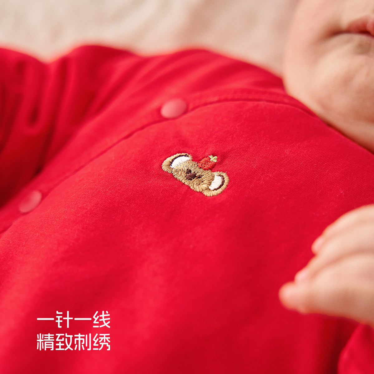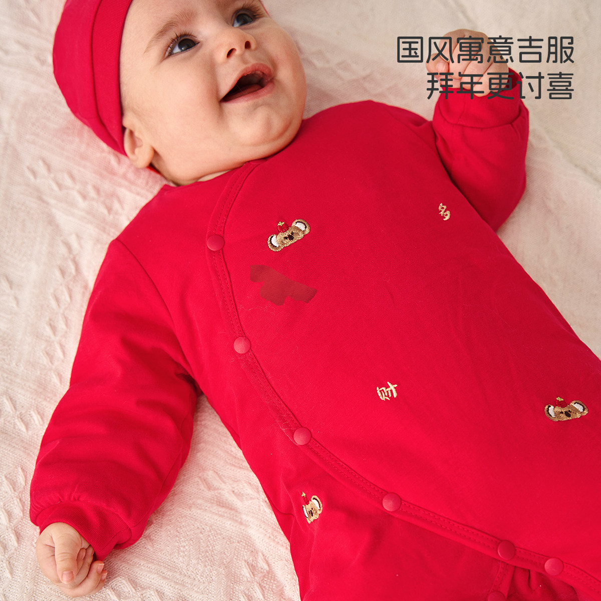 aqpa新生儿婴儿衣服夹棉棉服保暖秋冬宝宝连体衣哈衣爬服新年满月