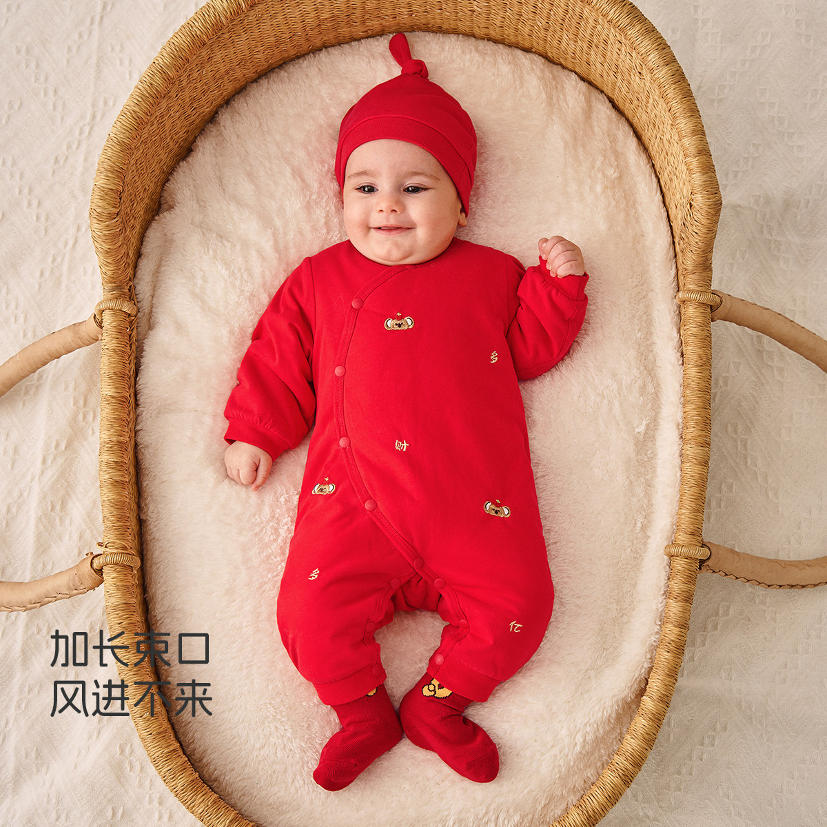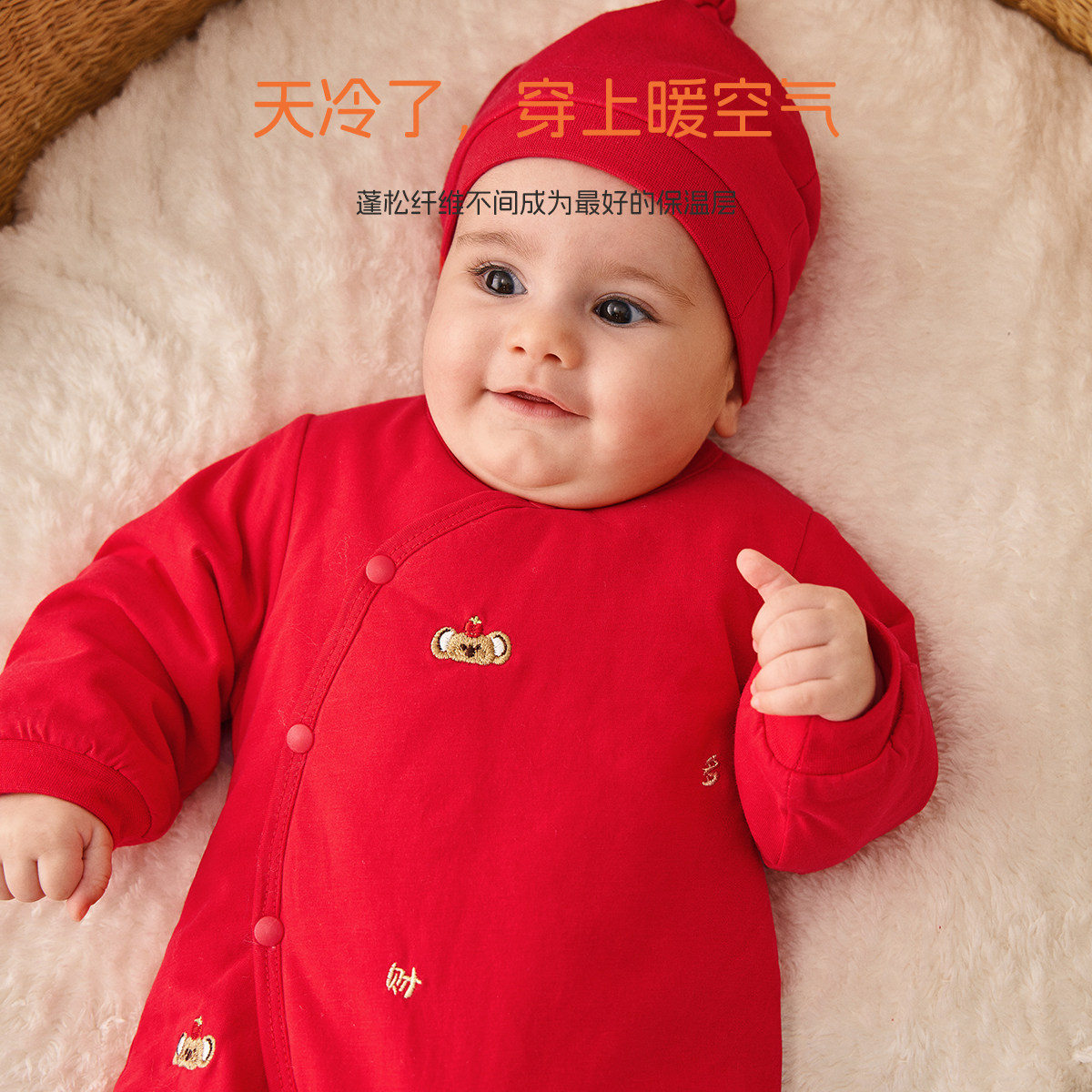 婧麒新生儿婴儿衣服秋冬夹棉满月纯棉初生宝宝秋装连体衣a类爬服