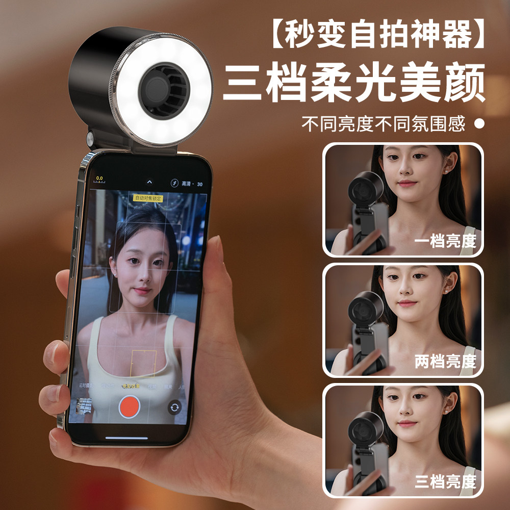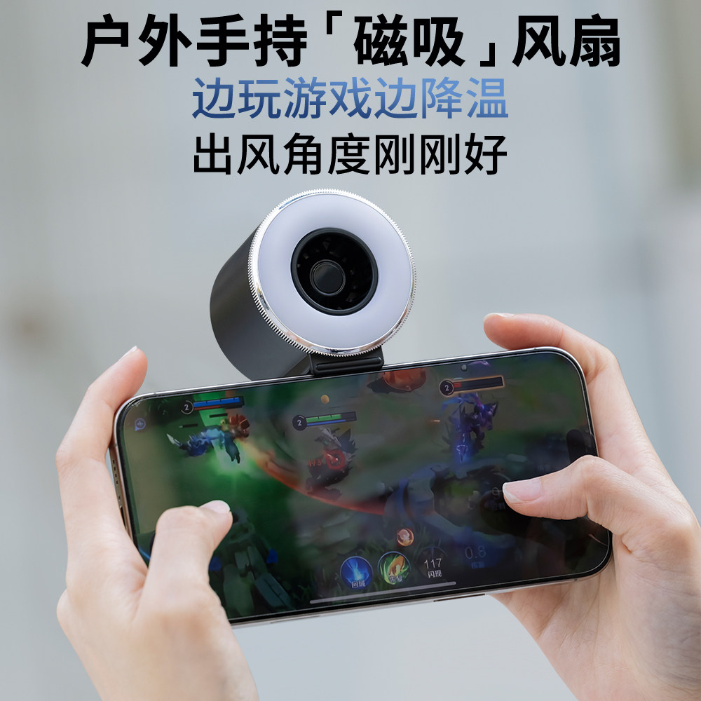 磁吸小风扇手持自拍美颜灯magsafe手机风扇2025年新款直播便携式补光灯桌面风扇学生宿舍户外静音usb制冷风扇