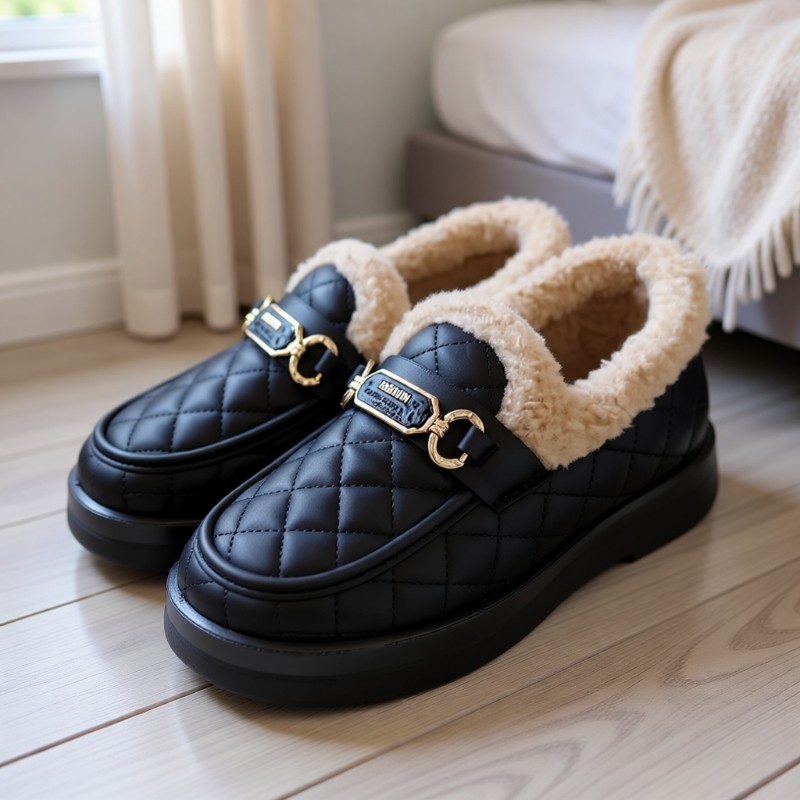 软底女鞋乐福鞋女2025年冬季新款一脚蹬加绒棉鞋豆豆鞋毛毛鞋防滑