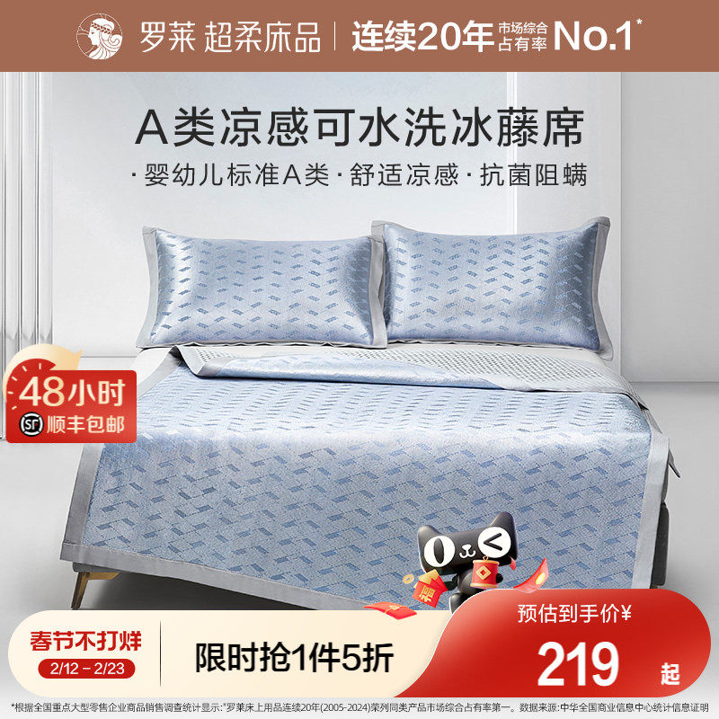 罗莱家纺凉席夏天夏季A类免水洗凉感可折叠双人床冰藤席席子