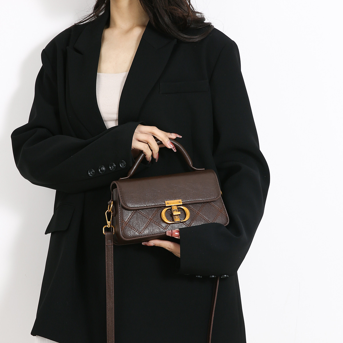 美拉德包包女2025新款高级感夏季复古单肩斜挎小方包精致小手提包