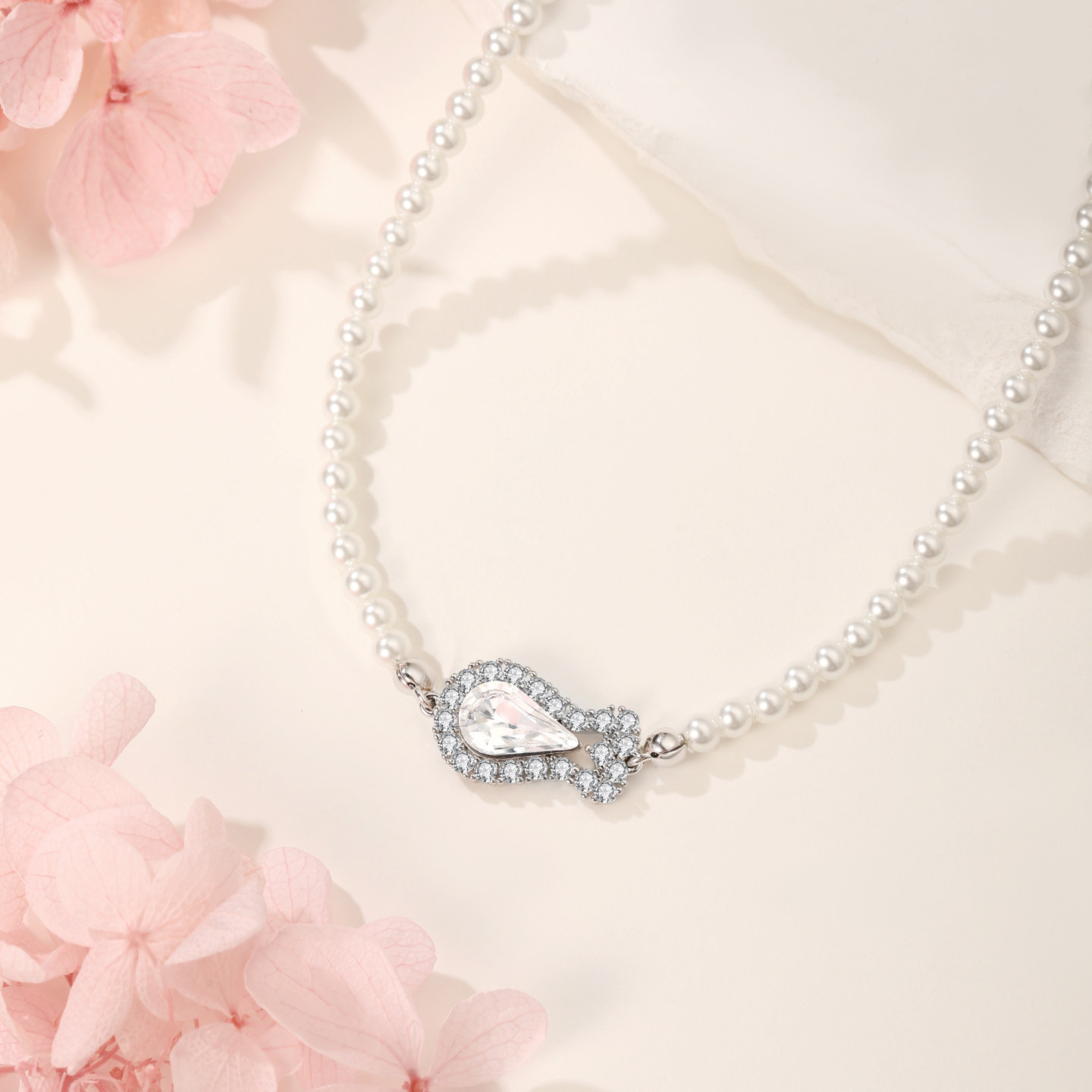 7XMEI/七线美泡泡鱼珍珠项链 卡通鱼镶嵌锆石精致小众轻奢锁骨链