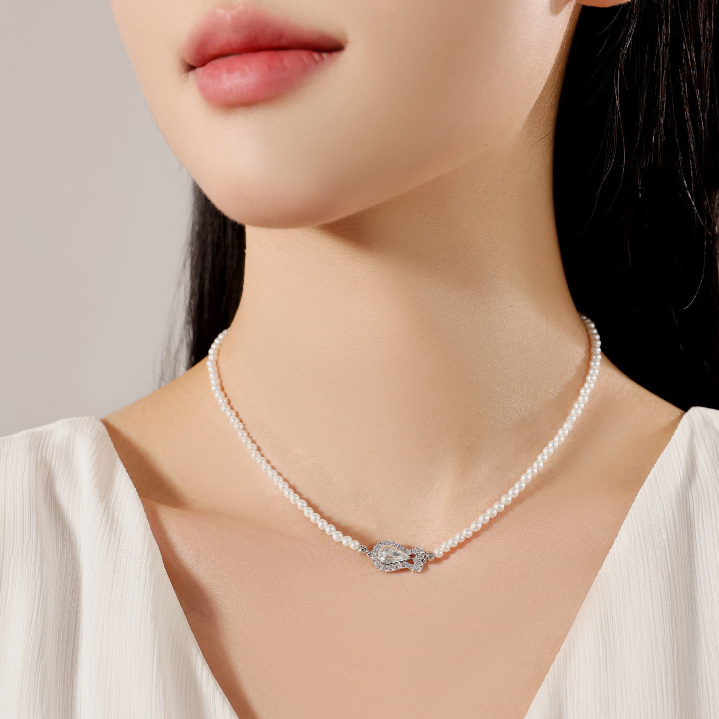 银色水滴吊坠项链女秋冬长款轻奢钛钢不掉色装饰毛衣链高级感配饰