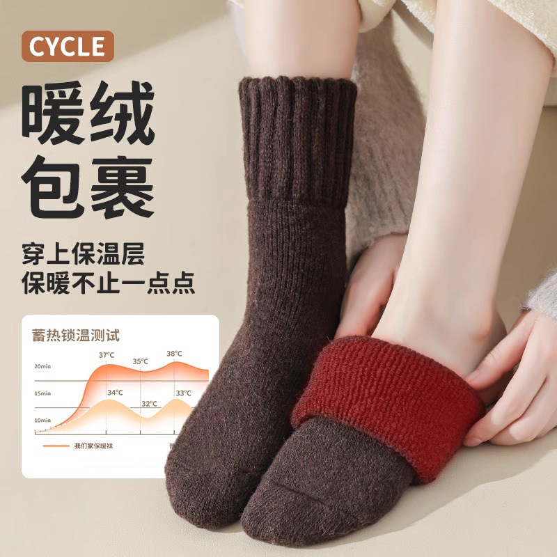 袜子女秋冬款中筒袜加厚毛巾袜保暖防寒暖绒袜冬天睡觉地板袜棉袜